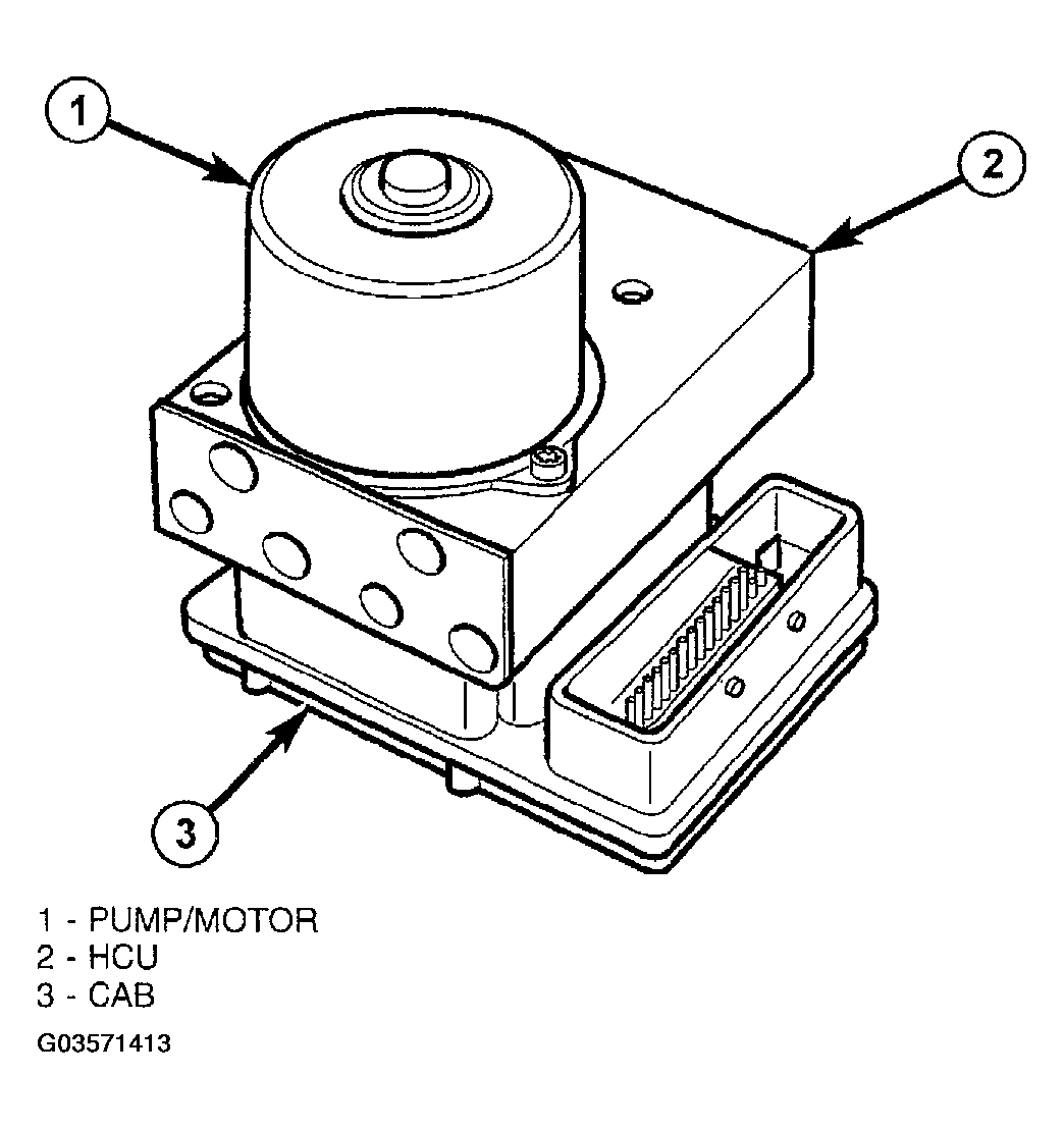 The controller antilock brake (CAB) is a microprocessor-based device which monitors the antilock brake system (ABS) during normal braking and controls it when the vehicle is in an ABS stop. The CAB is mounted to the HCU as part of the integrated control unit (ICU) (Fig 1). The CAB uses a 47-way connector on the vehicle wiring harness. The power source for the CAB is through the ignition switch in the RUN or ON position. The CAB is on the PCI bus.