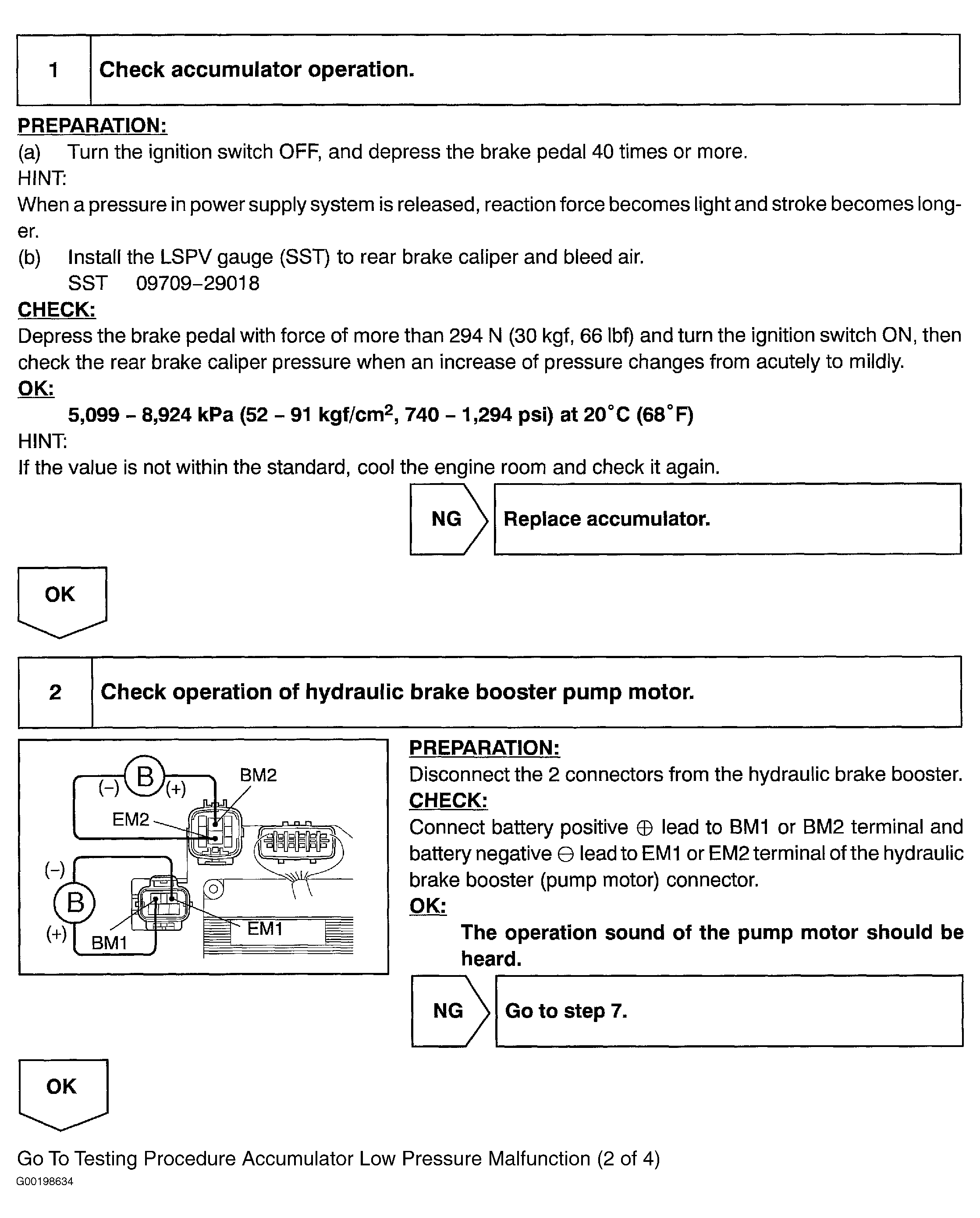 Fig 1: Testing Procedure Accumulator Low Pressure Malfunction (1 Of 4)