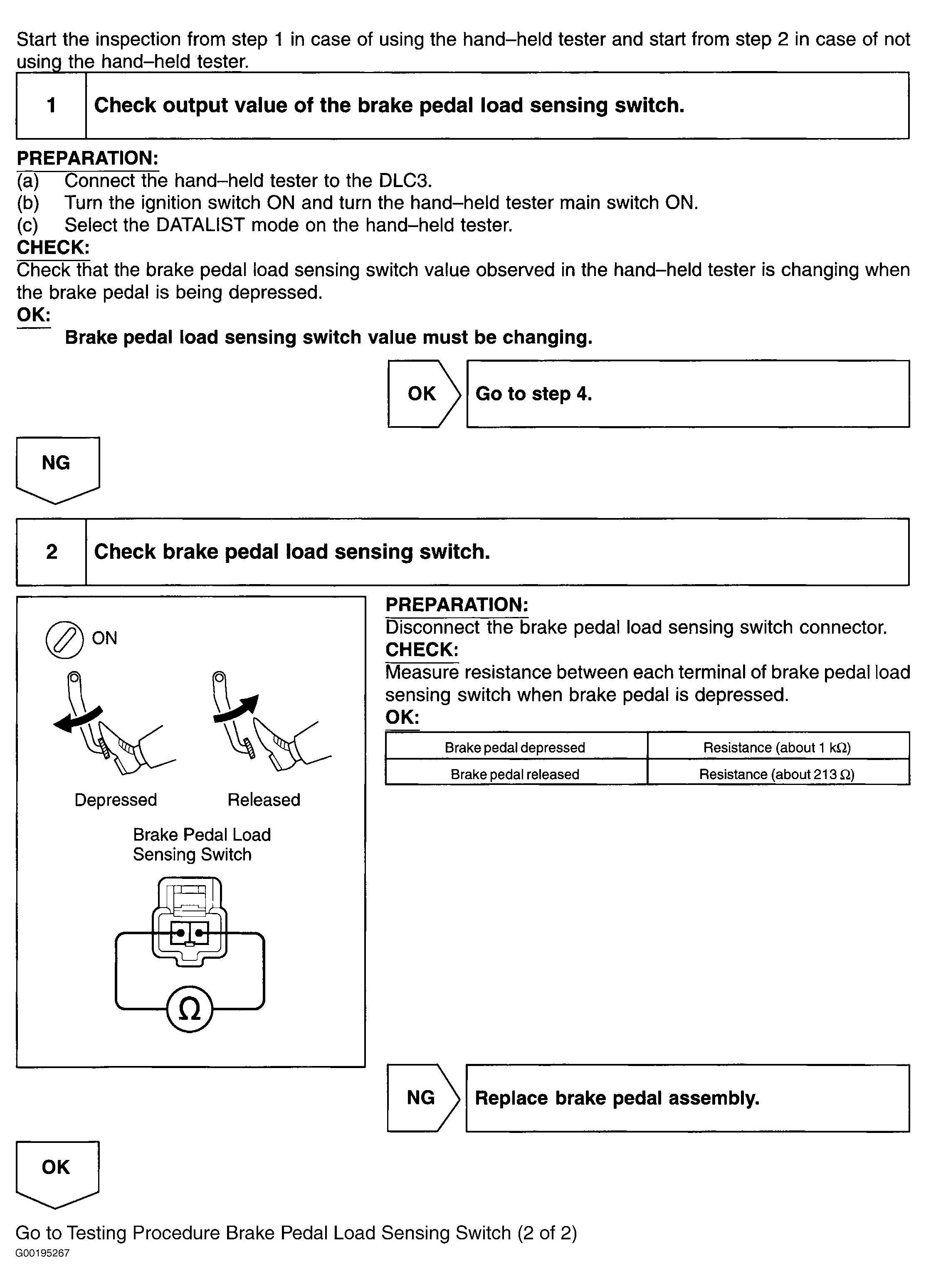 Fig 2: Testing Procedure Brake Pedal Load Sensing Switch (1 Of 2)