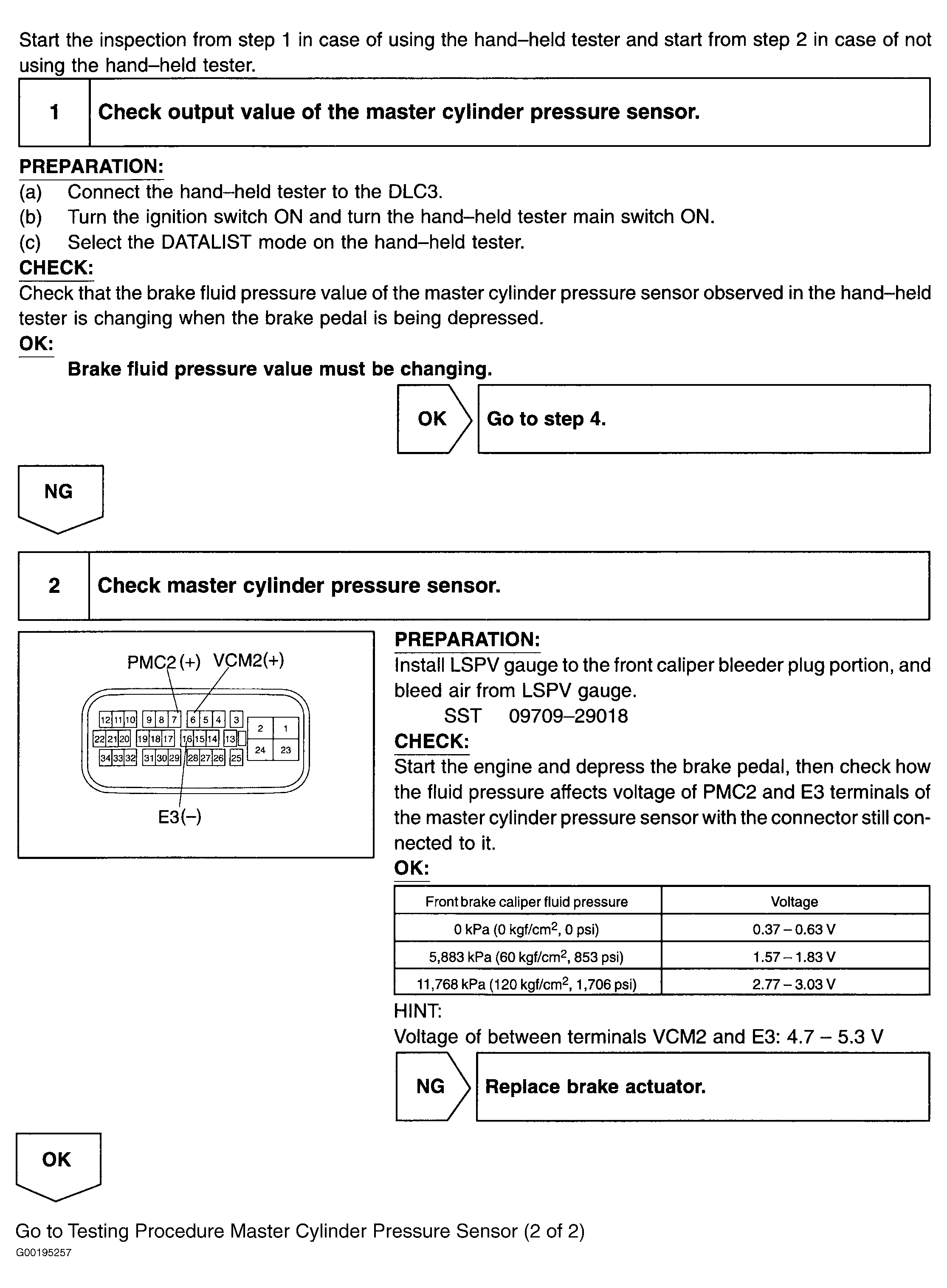 Fig 2: Testing Procedure Master Cylinder Pressure Sensor (1 Of 2)