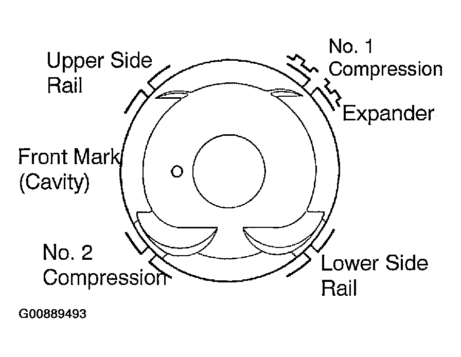 2. Using a piston ring expander, install the 2 compression rings with the code mark facing up.