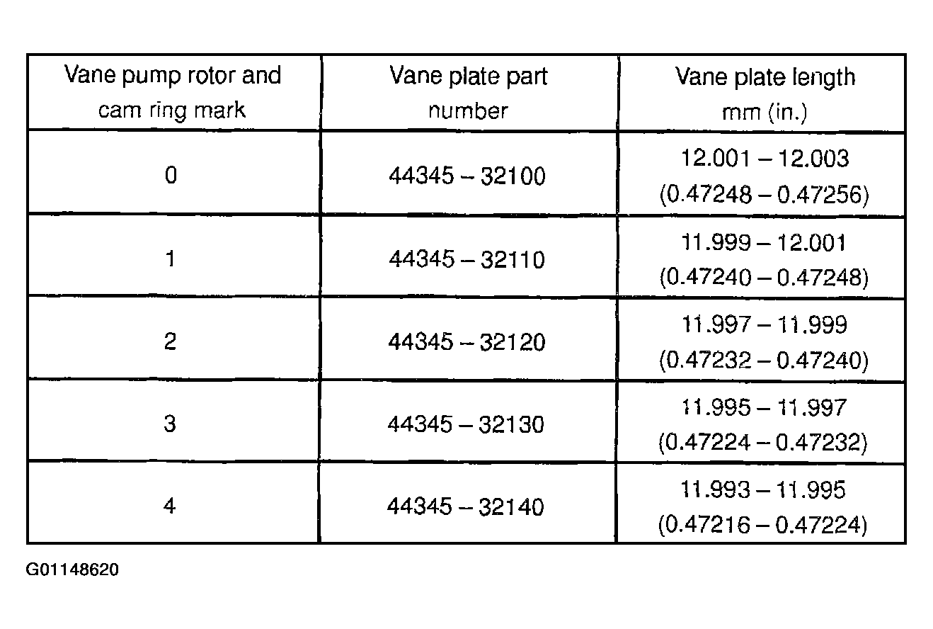 - If it is more than the maximum, replace the vane plate and/or vane pump rotor with the one having the same mark stamped on the cam ring.