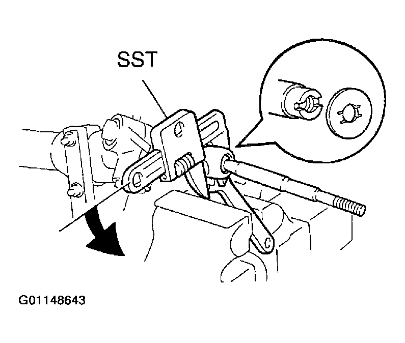 - Using SST, stop the control valve shaft rotating and remove the self-locking nut.