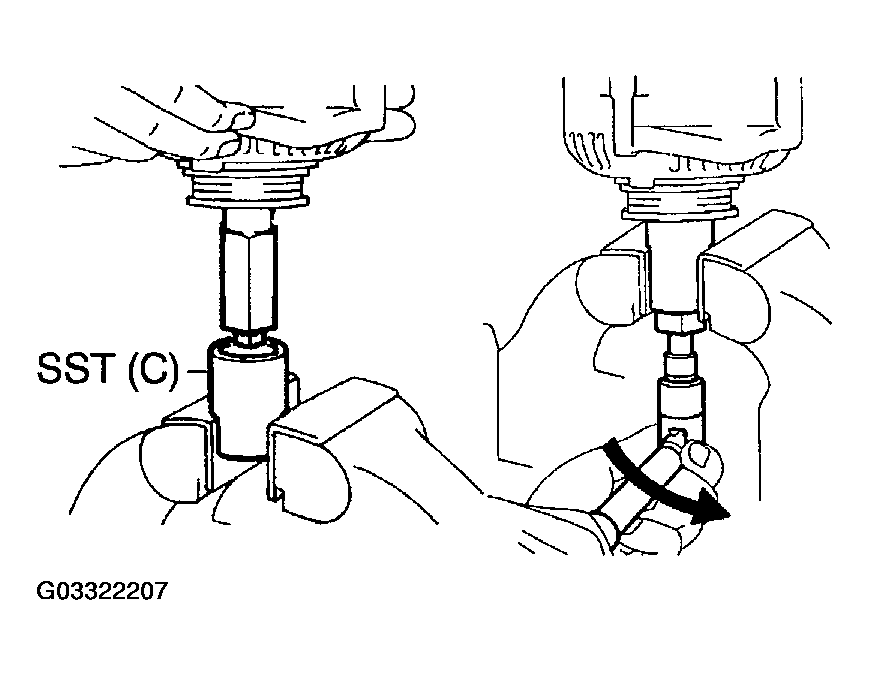- Hold SST (A) with a torque wrench, and tighten SST (B) clockwise to the specified torque.