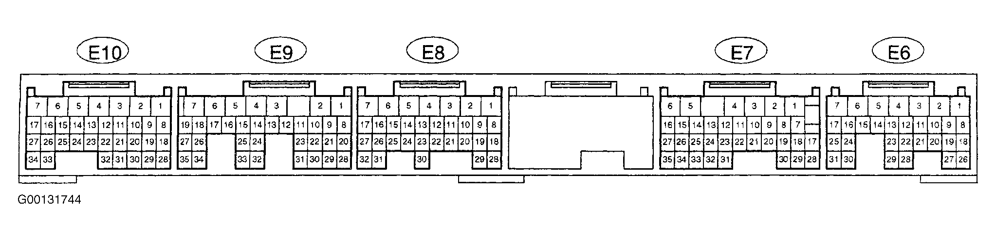 - Check for an open circuit in Brown wire between ground and terminal No. 28 at ECM E10 connector. See WIRING DIAGRAMS