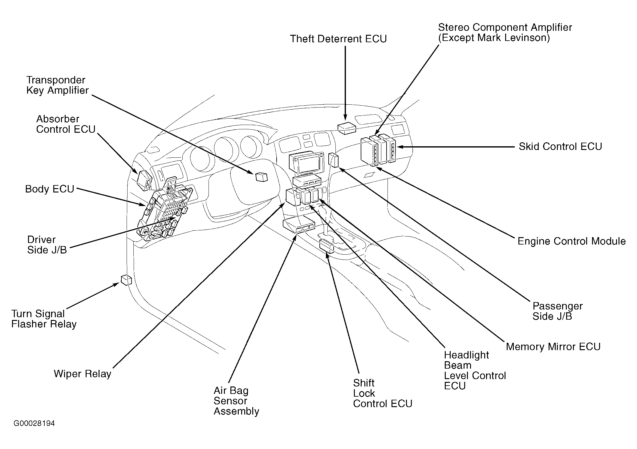 | Passenger Side J/B | Behind right side of dash. See Figure. |