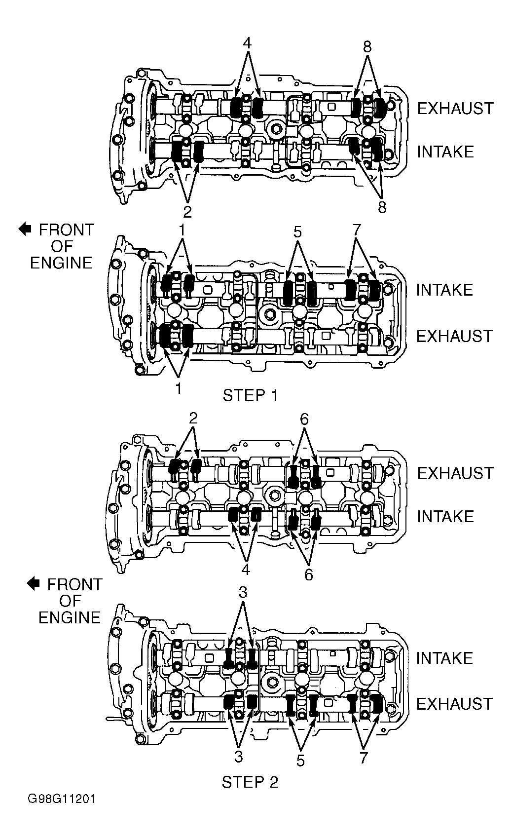 - Connect timing light to lead wire at ignition coil electrical connector on top of driver's side valve cover at cylinder No. 1. See Fig 2. Cylinder No. 1 is front cylinder on left side of engine when viewed from flywheel end of engine. See Figure.