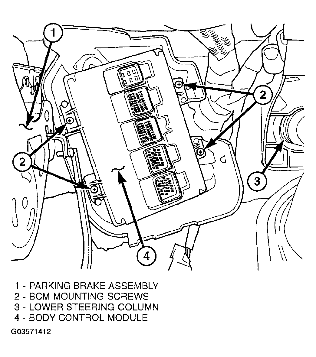 - Remove the four screws holding the BCM to the bulkhead (Figure).