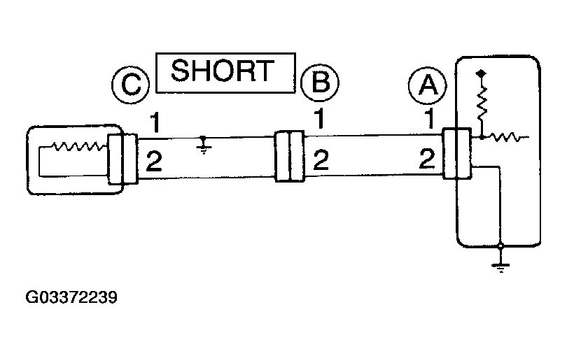 Therefore, it is found out that there is a short circuit between terminal 1 of connector "A" and terminal 1 of connector "C".