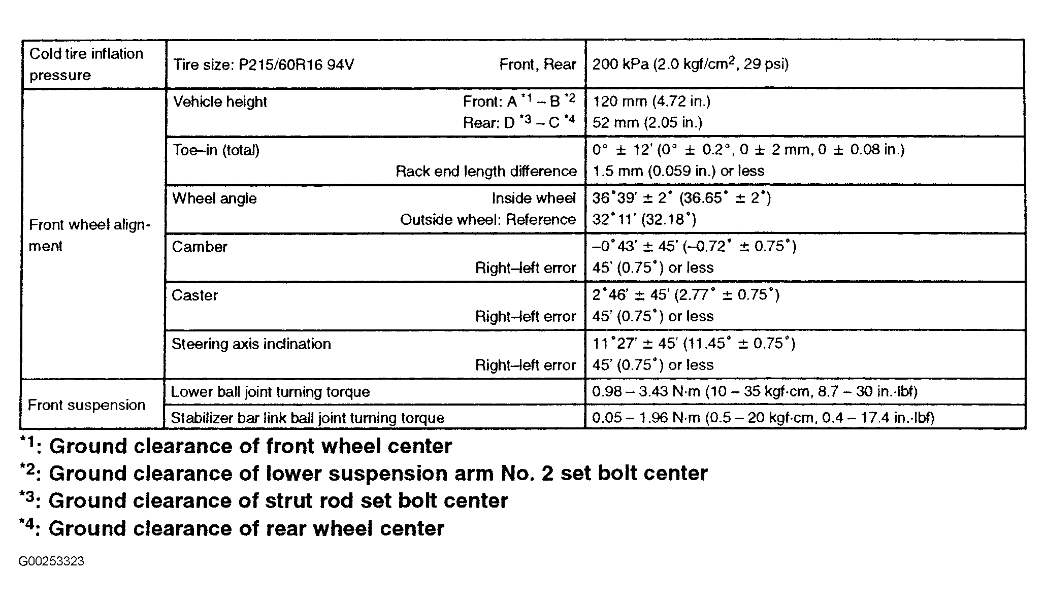 Fig 1: Front Wheel Alignment Specifications (ES 300)
