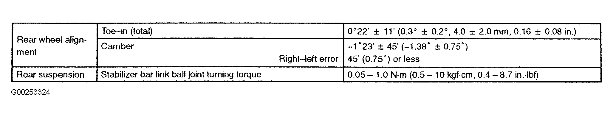 Fig 2: Rear Wheel Alignment Specifications (ES 300)