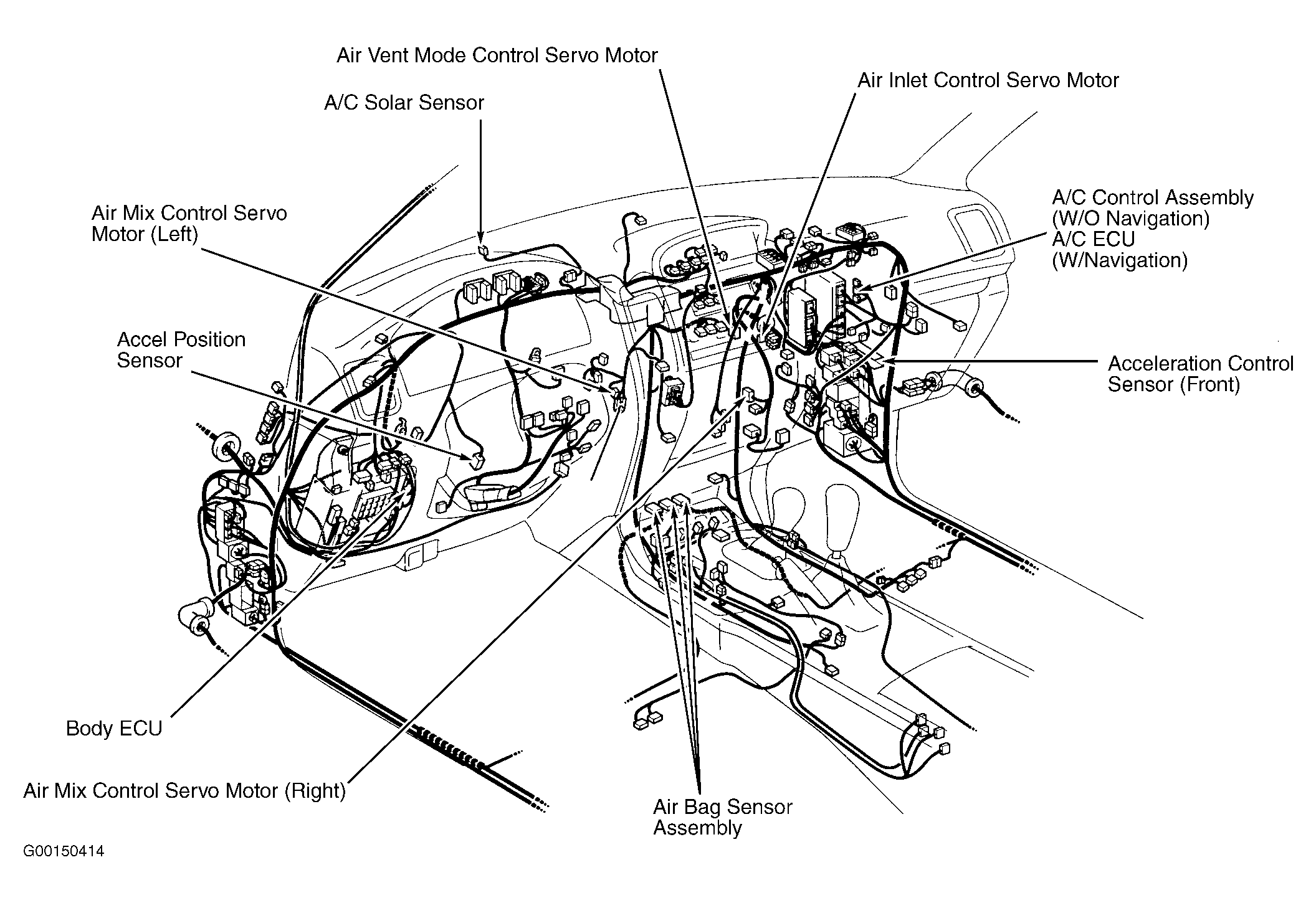 A/C ECU (W/Navigation) Behind right side of dash. See Figure.
