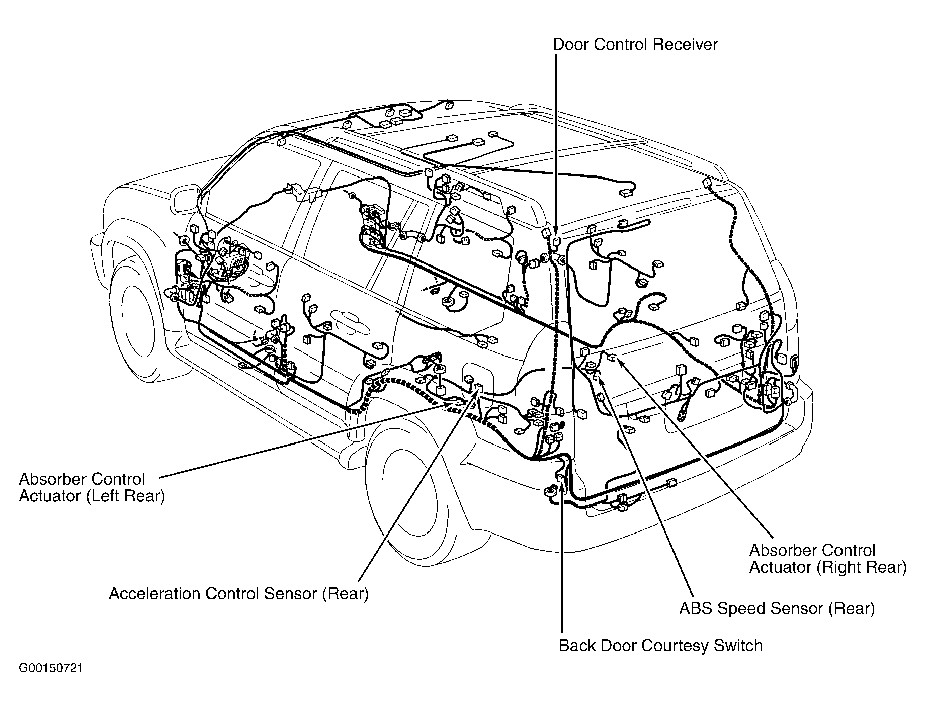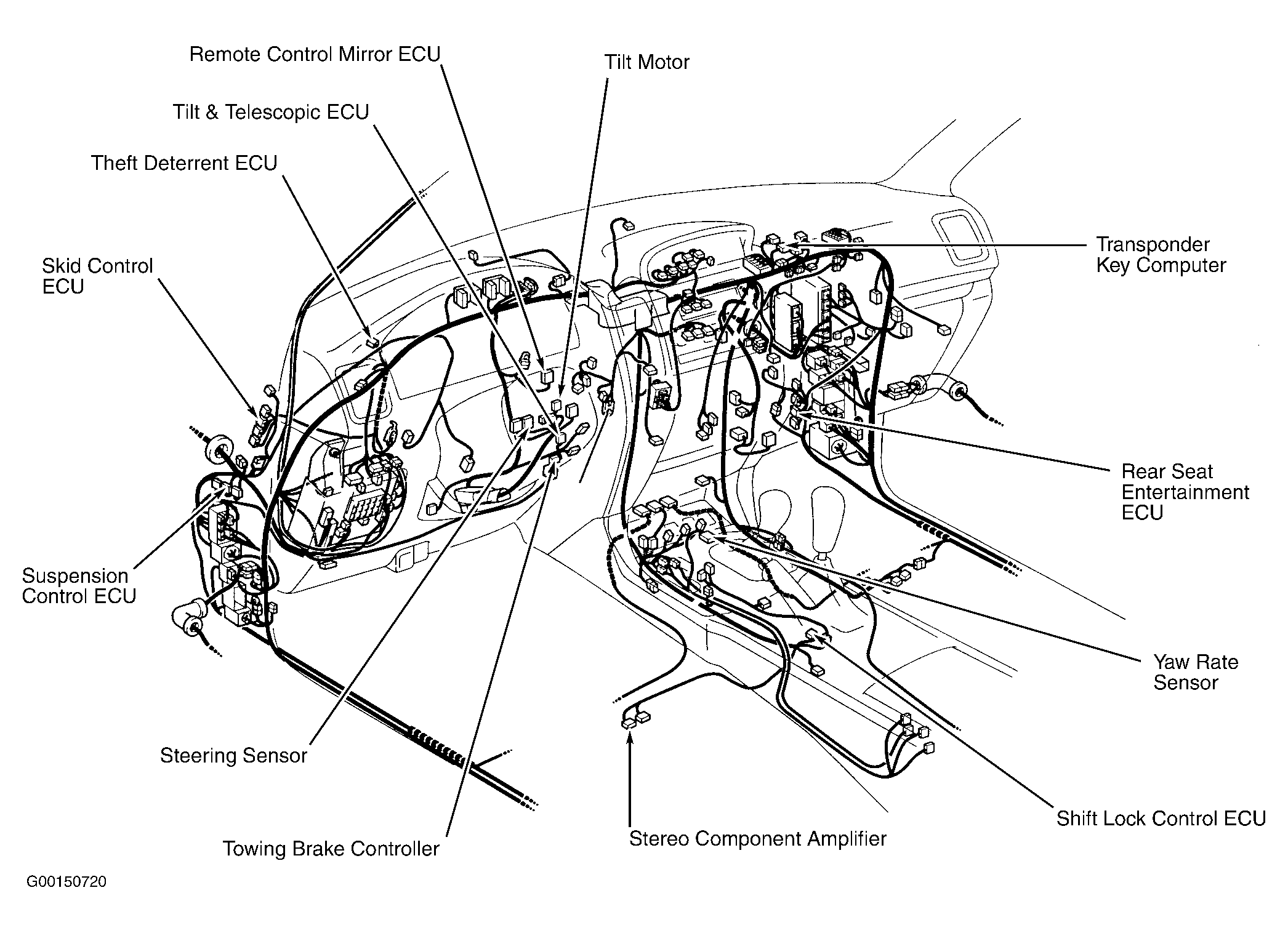 Suspension Control ECU Behind left end of dash, above driver side J/B. See Figure.