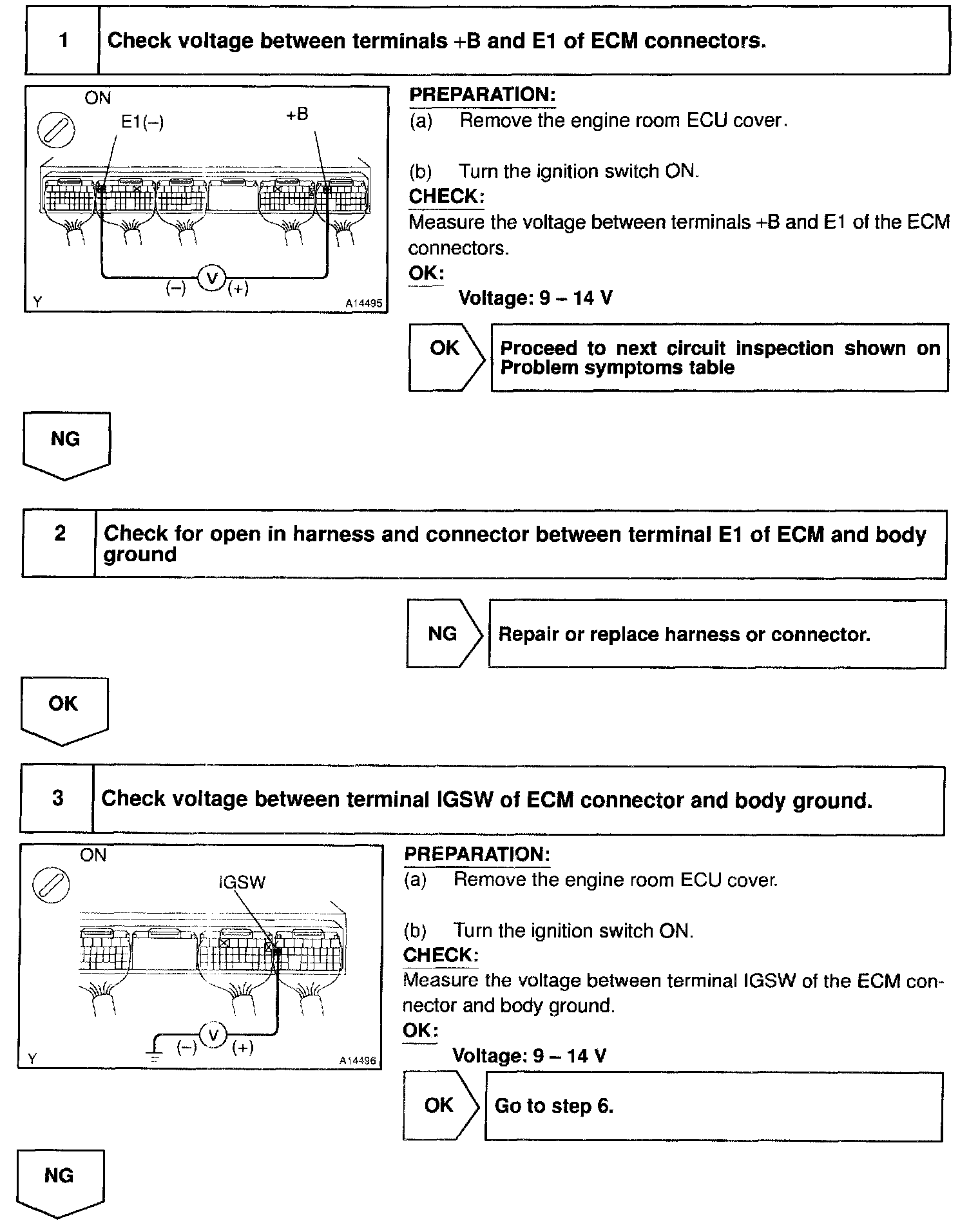 This signal causes current to flow to the coil, closing the contacts of the EFI main relay and supplying power to terminal +B of the ECM
