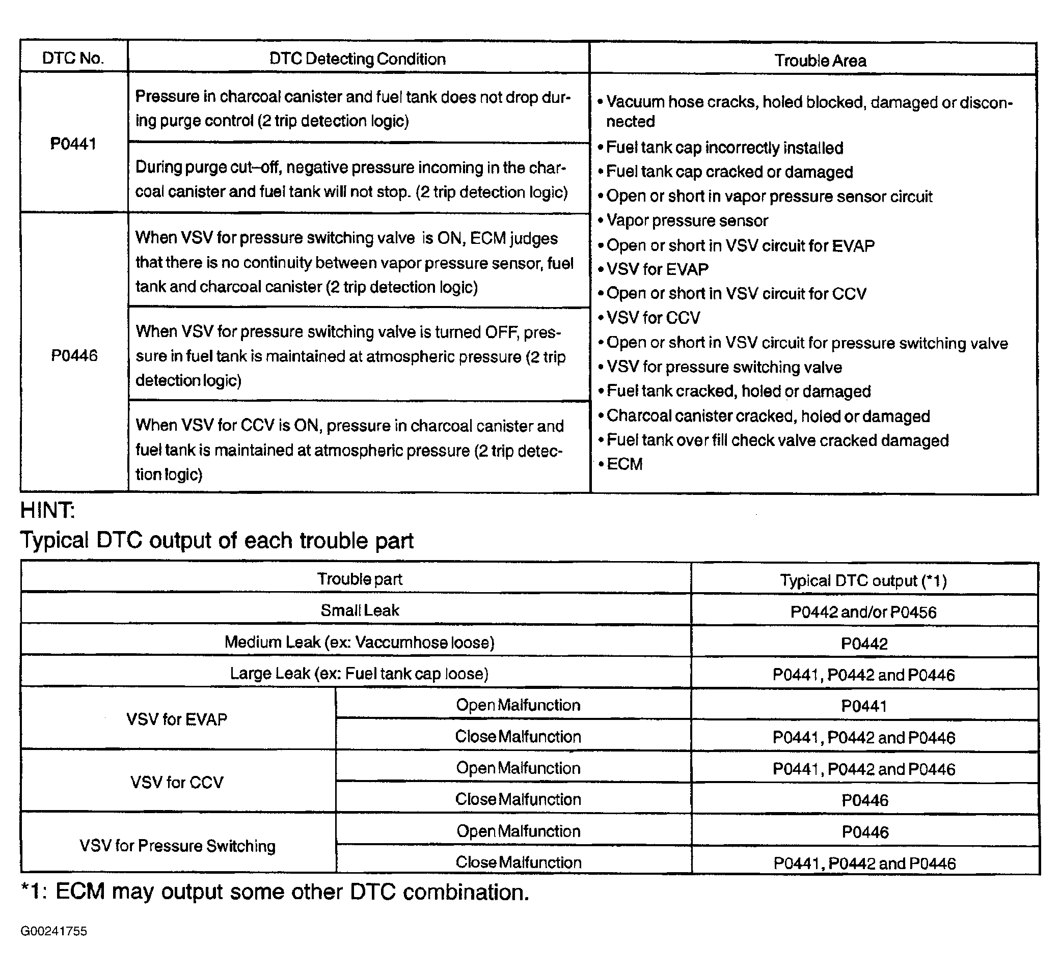Home >> Lexus >> 2003 >> LS 430 >> Repair and Diagnosis >> External Pages >> Different car >> Section 120 (Engine Control System Self Diagnostics) >> Diagnostic Tests >> DTC P0441: EVAP Emission Control System Incorrect Purge Flow Or P0446: EVAP Emission Control System Vent Control Circuit >> Possible Causes