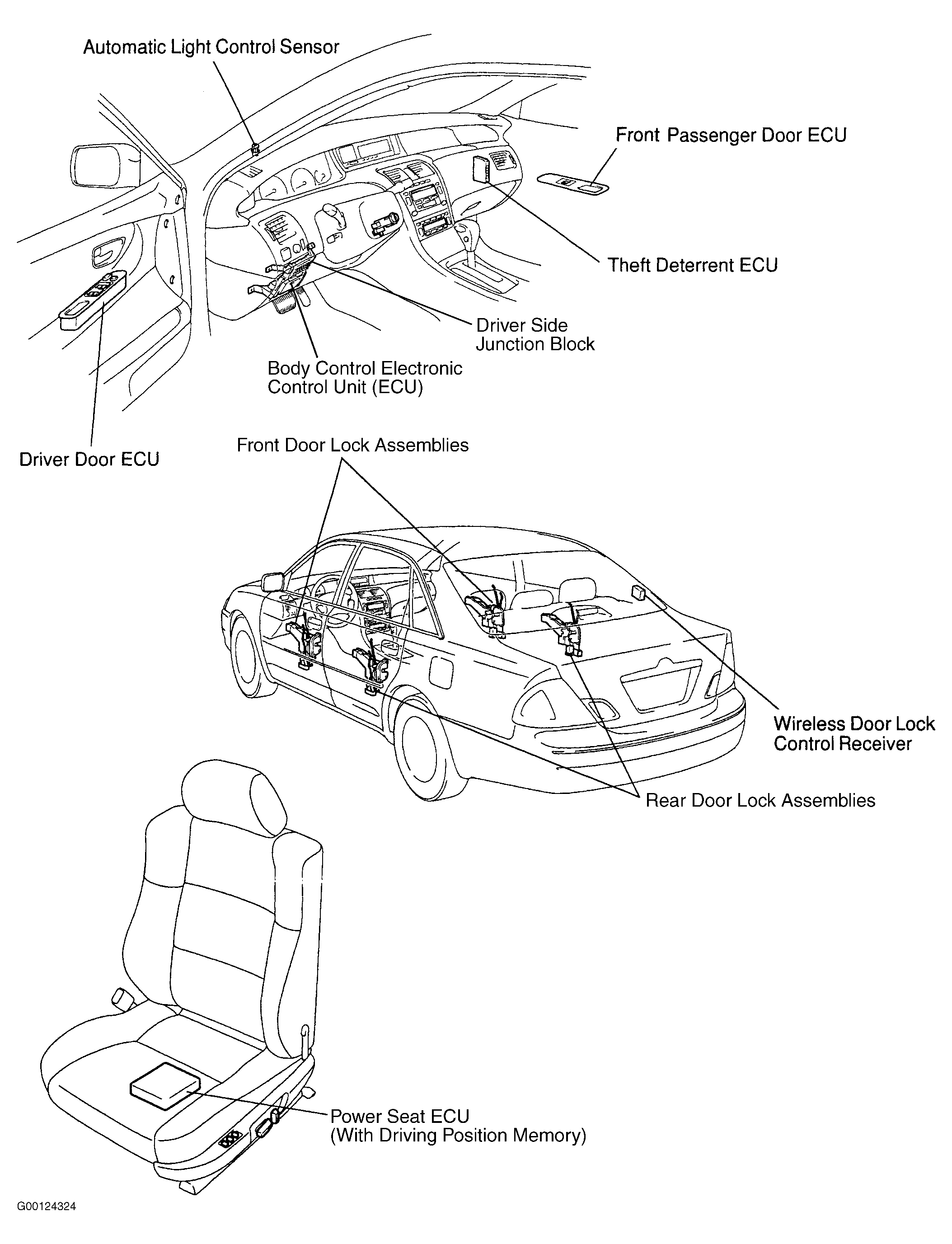 | Power Seat ECU (With Driving Position Memory) | Under Driver Seat |