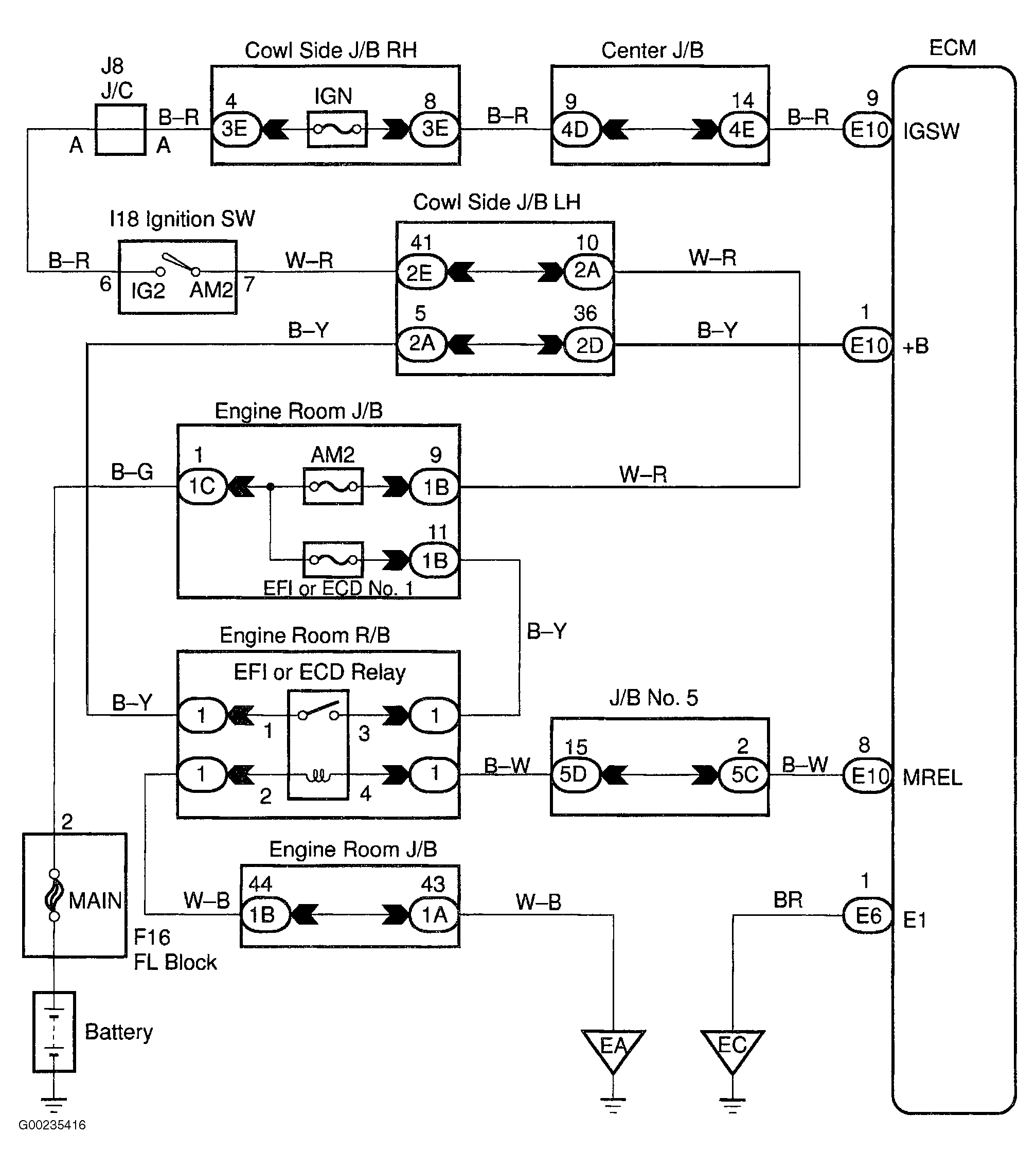 Engine Control Module (ECM) Power Source Circuit (Ignition On)