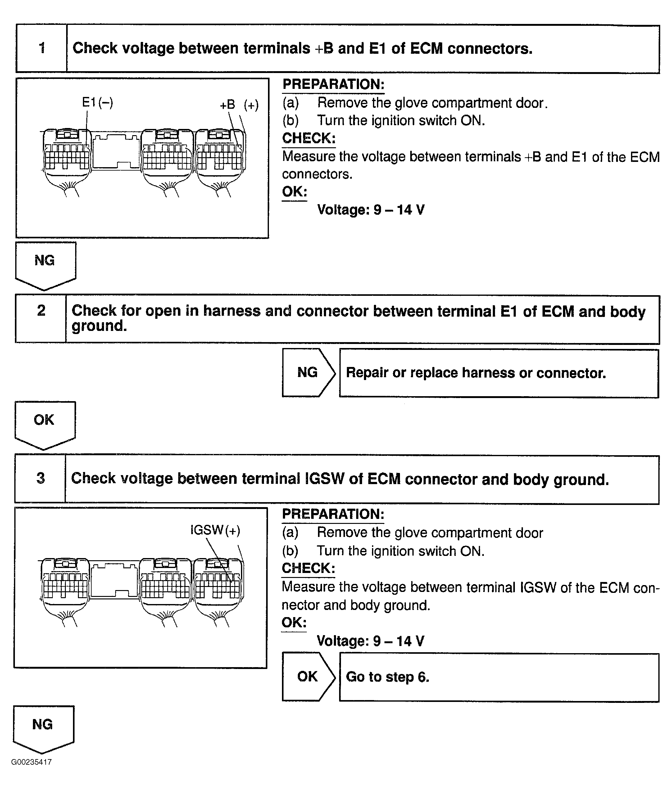 Fig 3: Diagnosis & Repair Of ECM Power Source Circuit (Step 4-6)