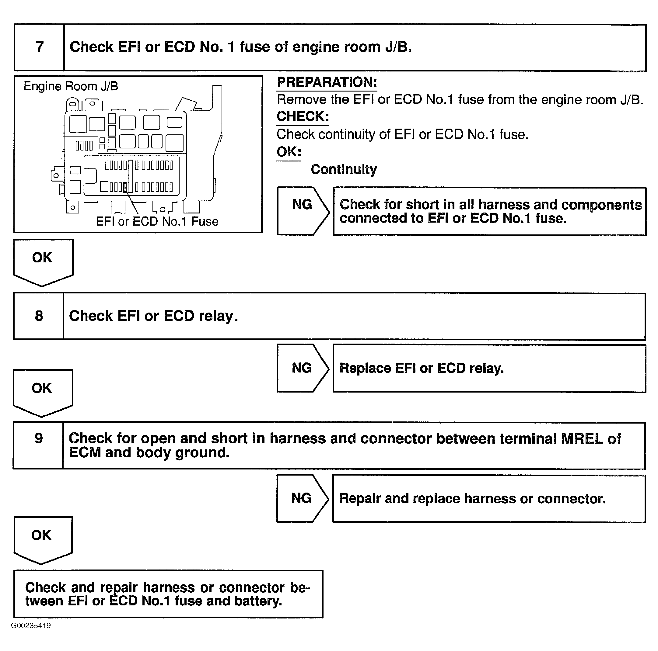 Fig 4: Diagnosis & Repair Of ECM Power Source Circuit (Step 7-9)