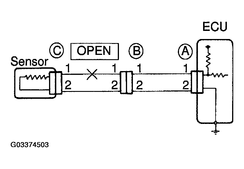 Therefore, it is found out that there is an open circuit between terminal 1 of connector "A" and terminal 1 of connector "C".