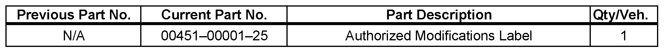 9. Enter the required information on the Authorized Modifications Label and affix it to the vehicle at the location shown in Figure 1. The Authorized Modifications Label is available through the PDC, P/N 00451-00001-25