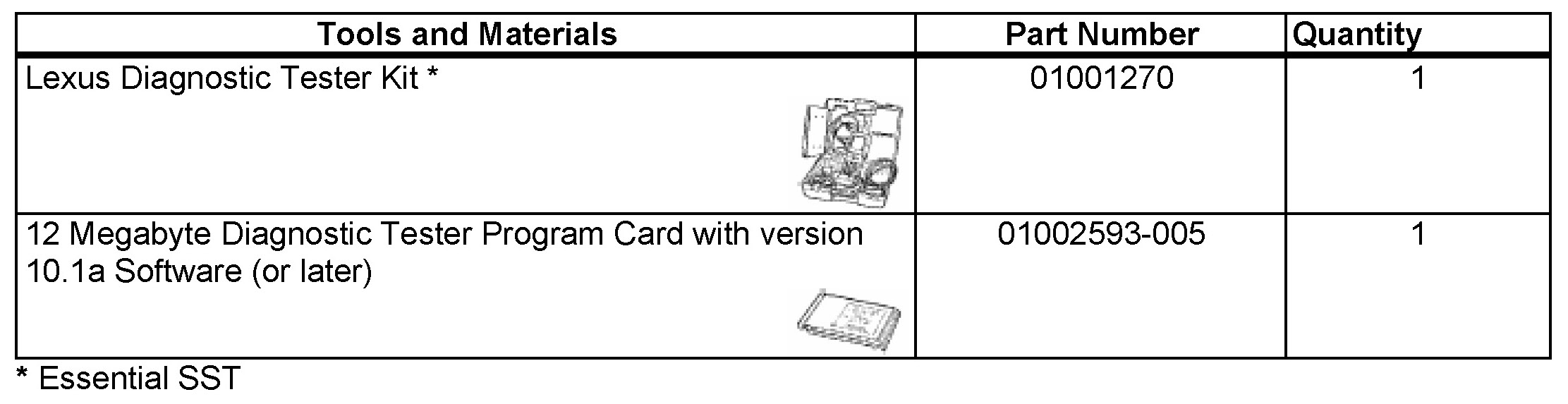 - Version 12.01a or later Diagnostic Tester software is required to perform this procedure.