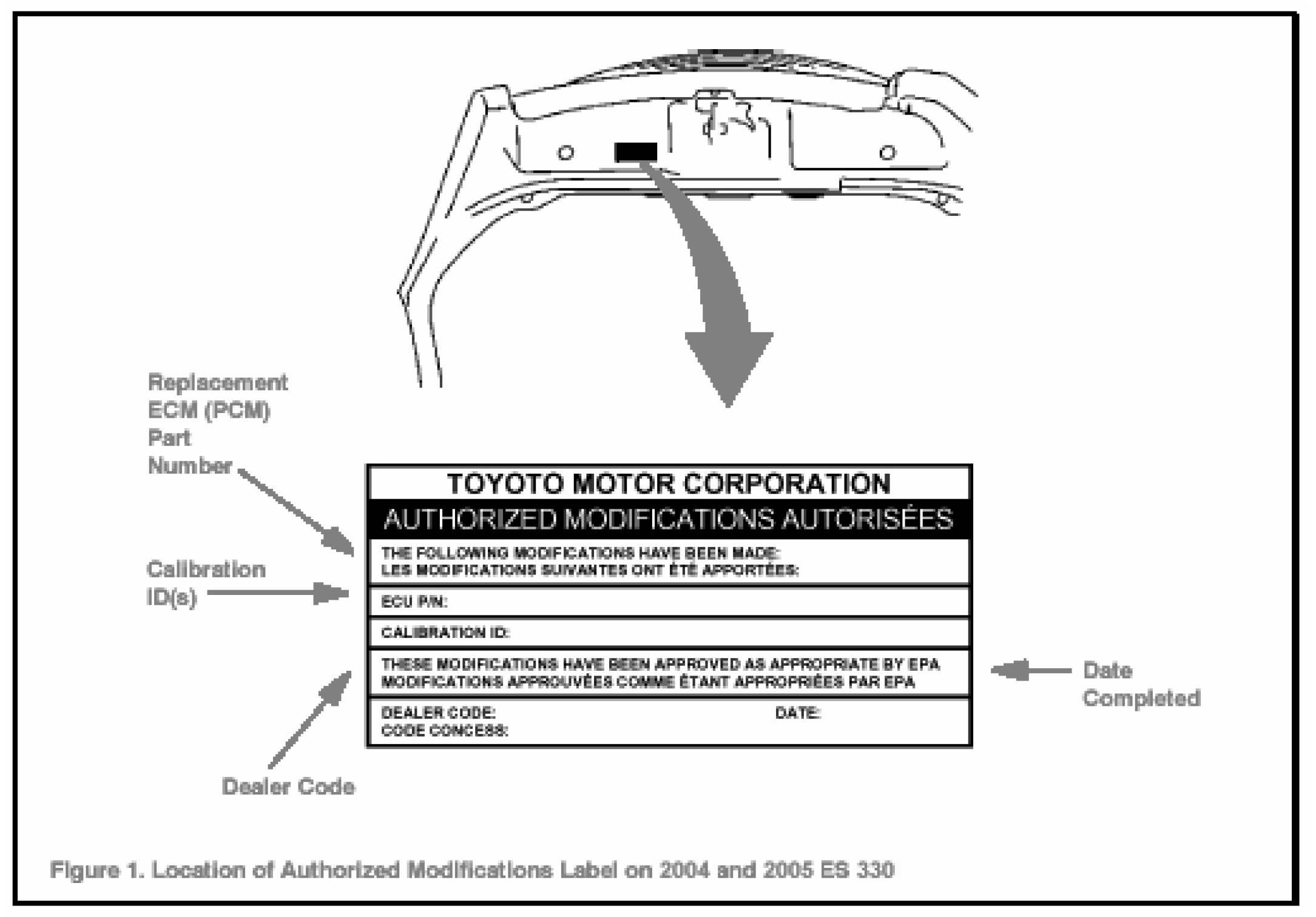 - Before proceeding, verify the ECM (PCM) calibration has NOT been updated by checking for the Authorized Modifications Label (shown in Step 1 of the Repair Procedure).
