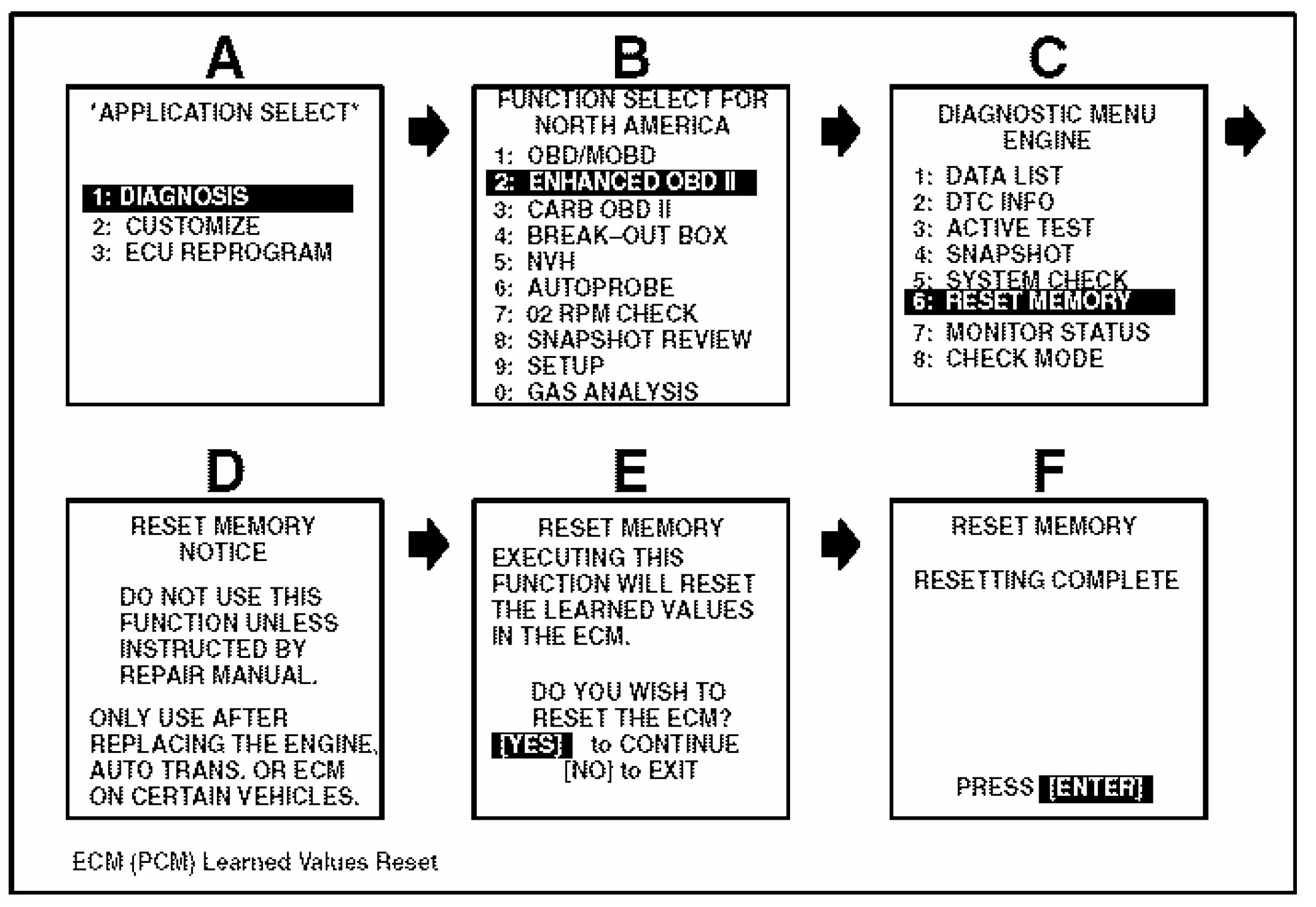 5. Reset the ECM learned values using the diagnostic tester. Refer to the procedures below.