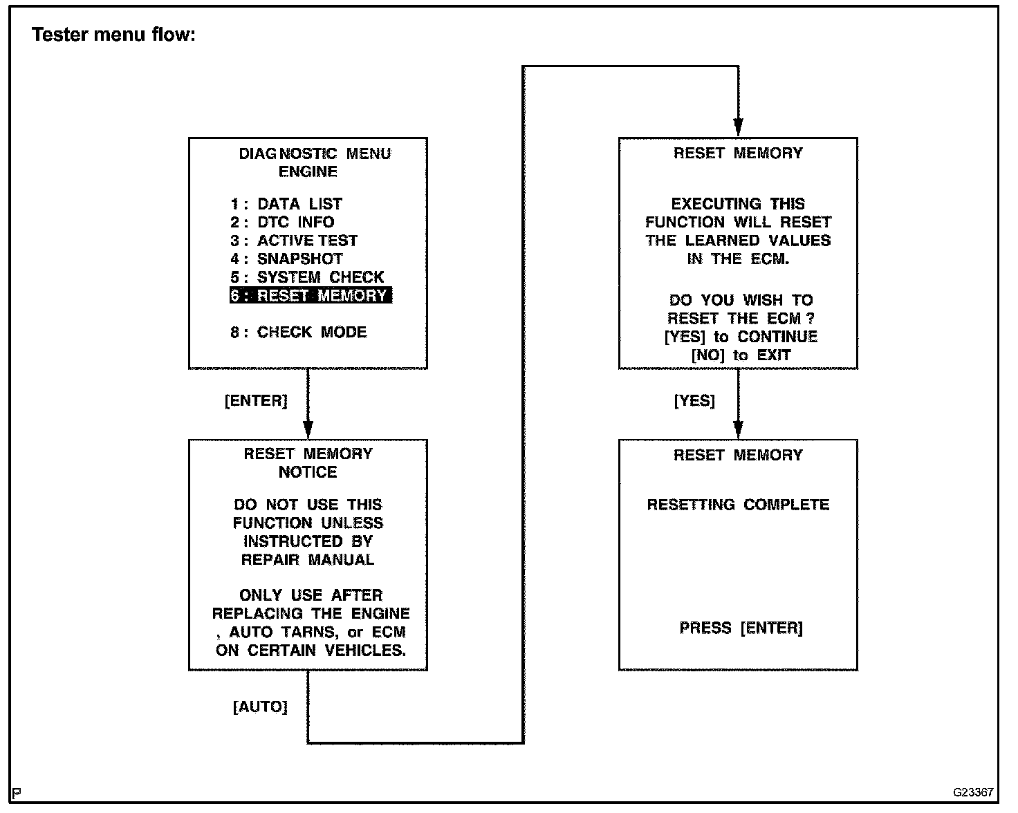 CAUTION: After performing the RESET MEMORY, be sure to perform the ROAD TEST described earlier.