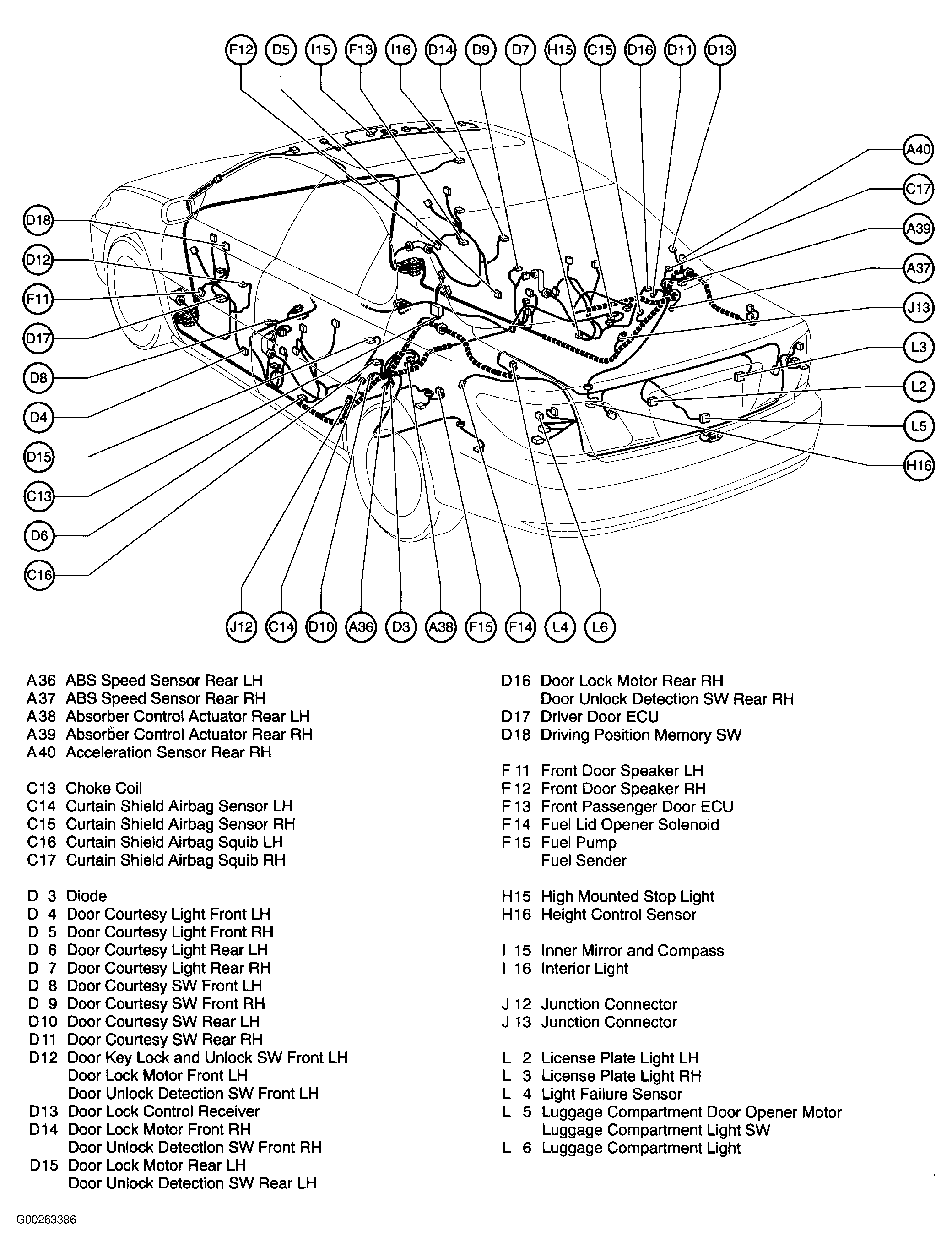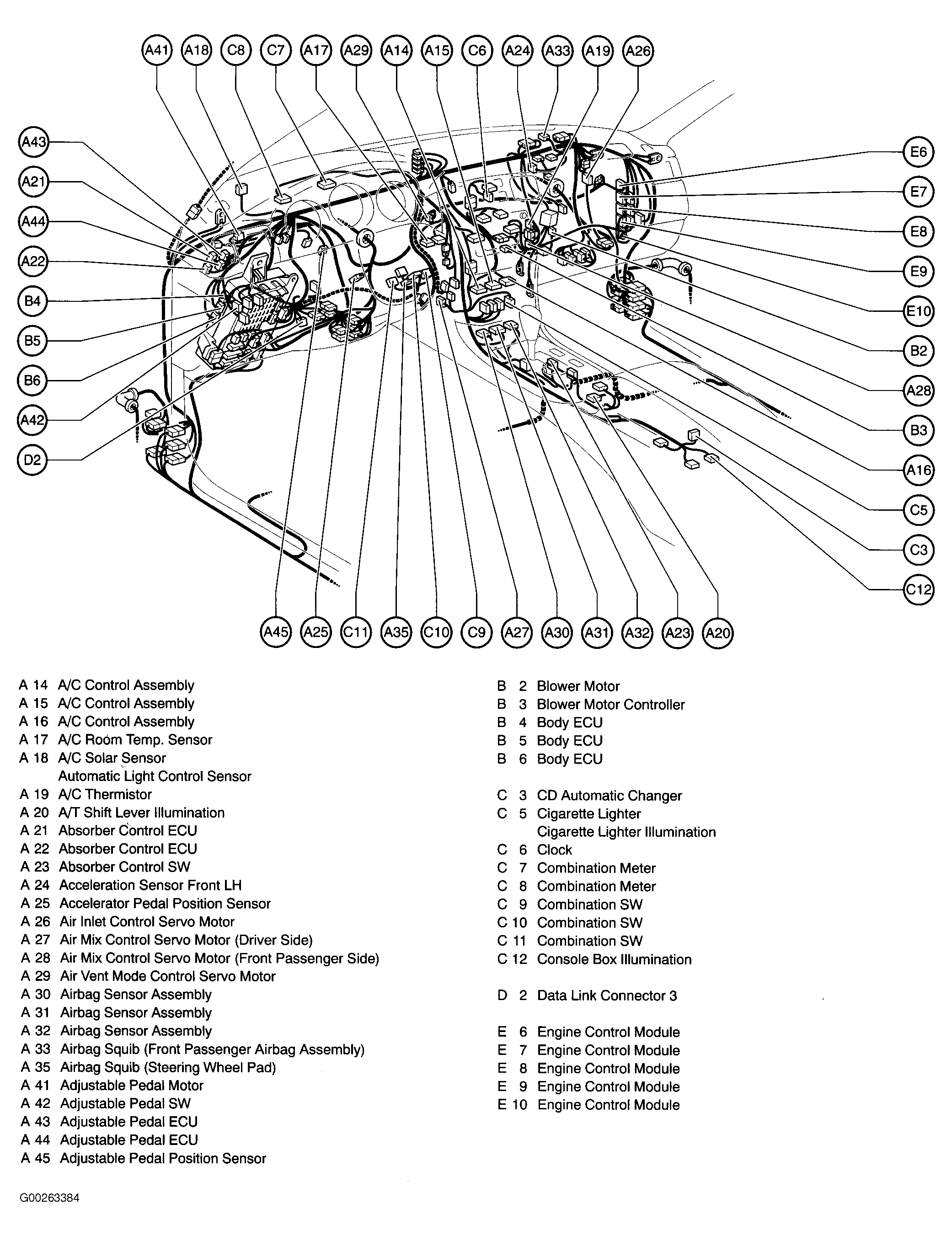 | Absorber Control ECU | Behind left end of dash. See Figure. |