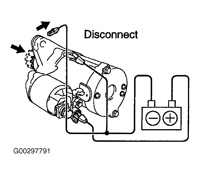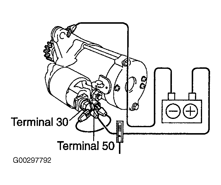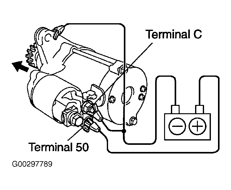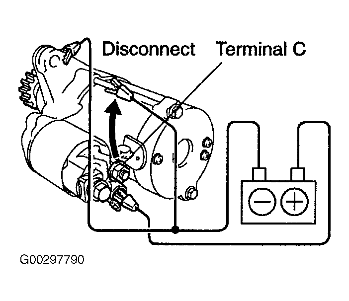 - Disconnect the negative lead from terminal "C". See Fig 2. Verify that the pinion gear remains out.