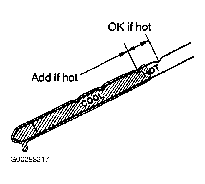 NOTE: If engine does not run or fluid has been replaced from a dry fill starting point, use COOL range on dipstick as a rough reference.