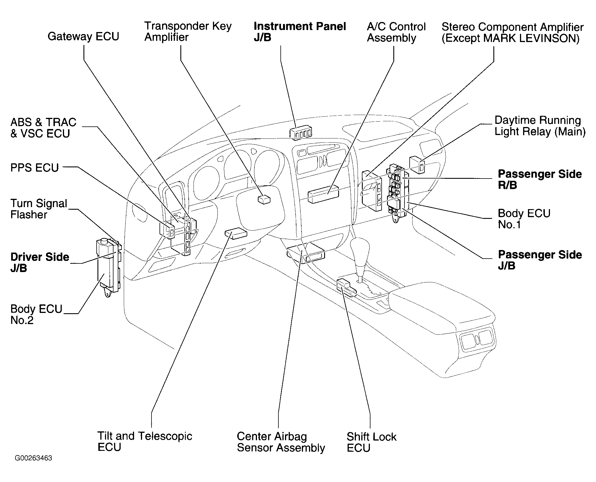 | Body ECU No. 1 | In passenger side J/B. See Figure. |