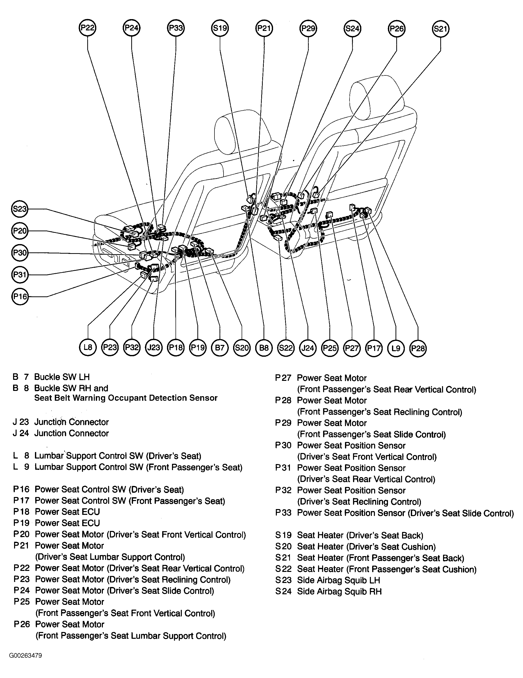 | Power Seat ECU | Under driver's seat. See Figure. |
