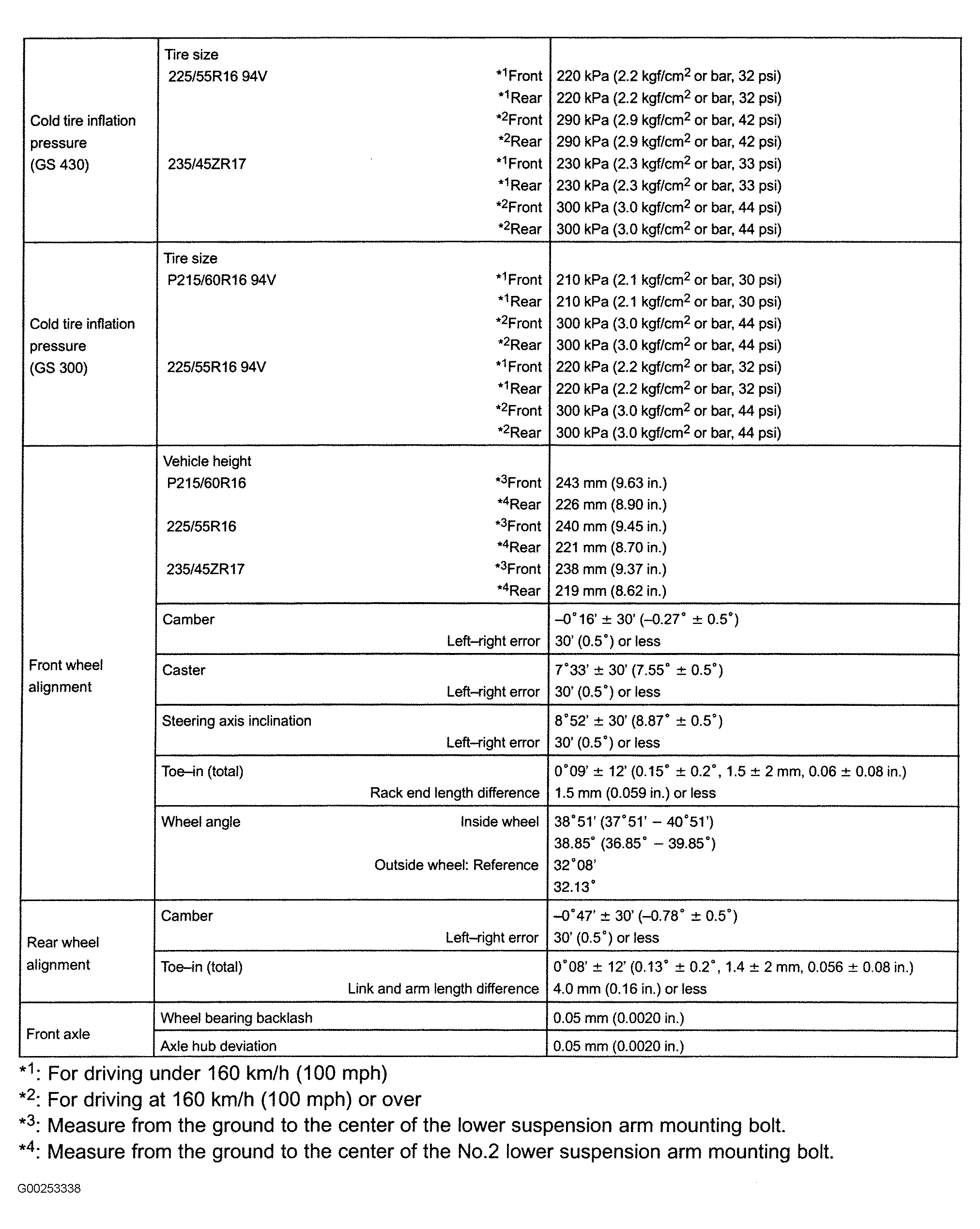Fig 2: Front & Rear Wheel Alignment Specifications (GS 300 & GS 430 - 2 of 2)