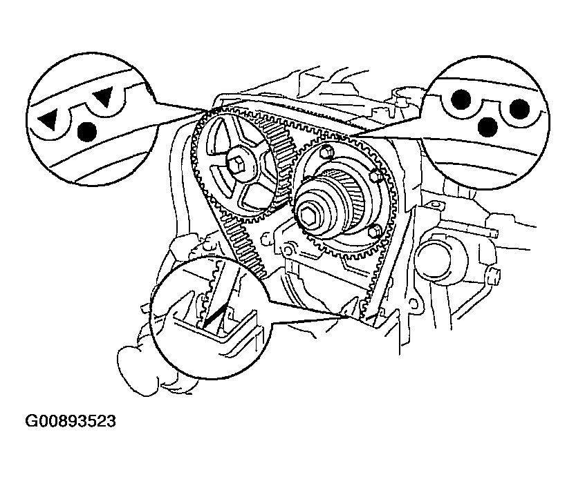 - Disconnect the timing belt from the camshaft timing pulleys.