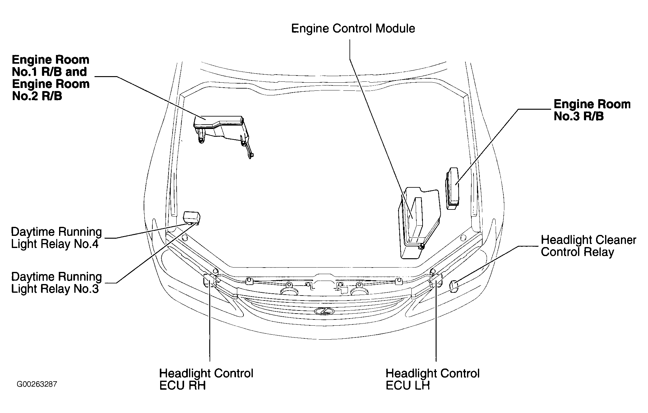 Engine Room No. 1 R/B On right rear of engine compartment. See Figure.