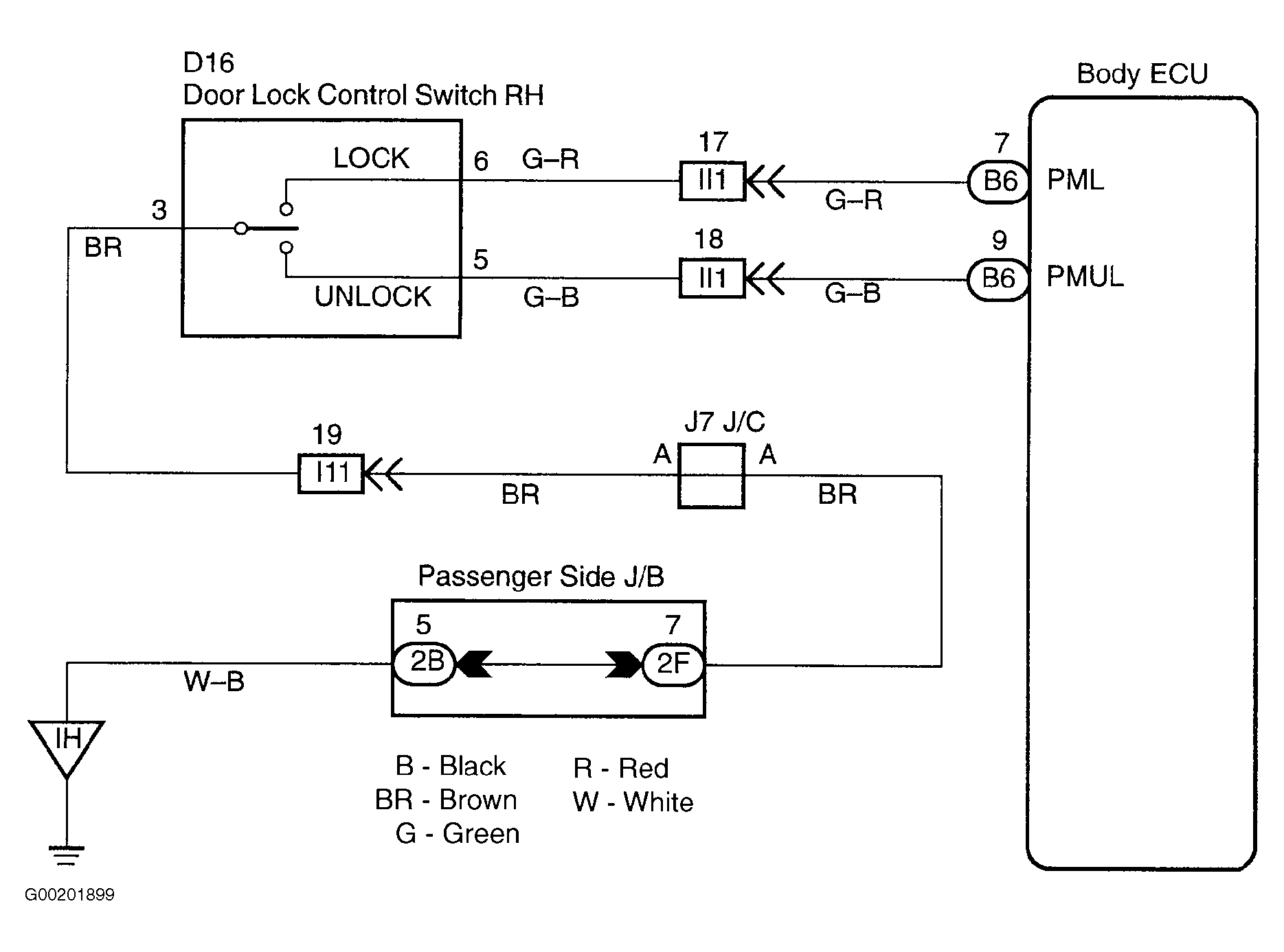 The door lock control switch circuit can be checked using DTC check. See DTC B1211/11: POWER WINDOW MASTER SWITCH ECU COMMUNICATION STOP under DIAGNOSTIC TESTS under MULTIPLEX COMMUNICATION SYSTEM article under COMMUNICATION DEVICES in ACCESSORIES & EQUIPMENT. For circuit diagram, see Fig 1.