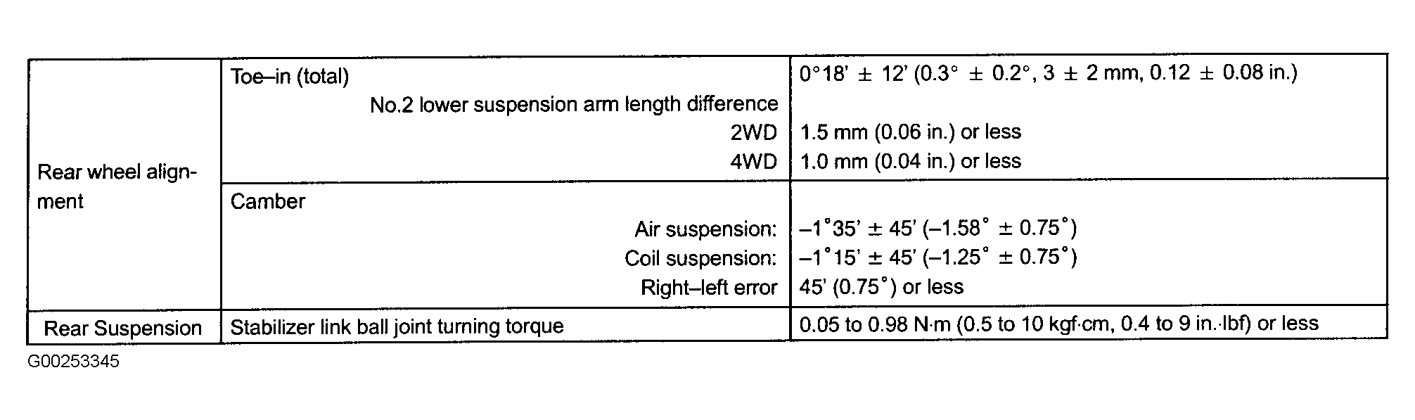 Fig 2: Rear Wheel Alignment Specifications