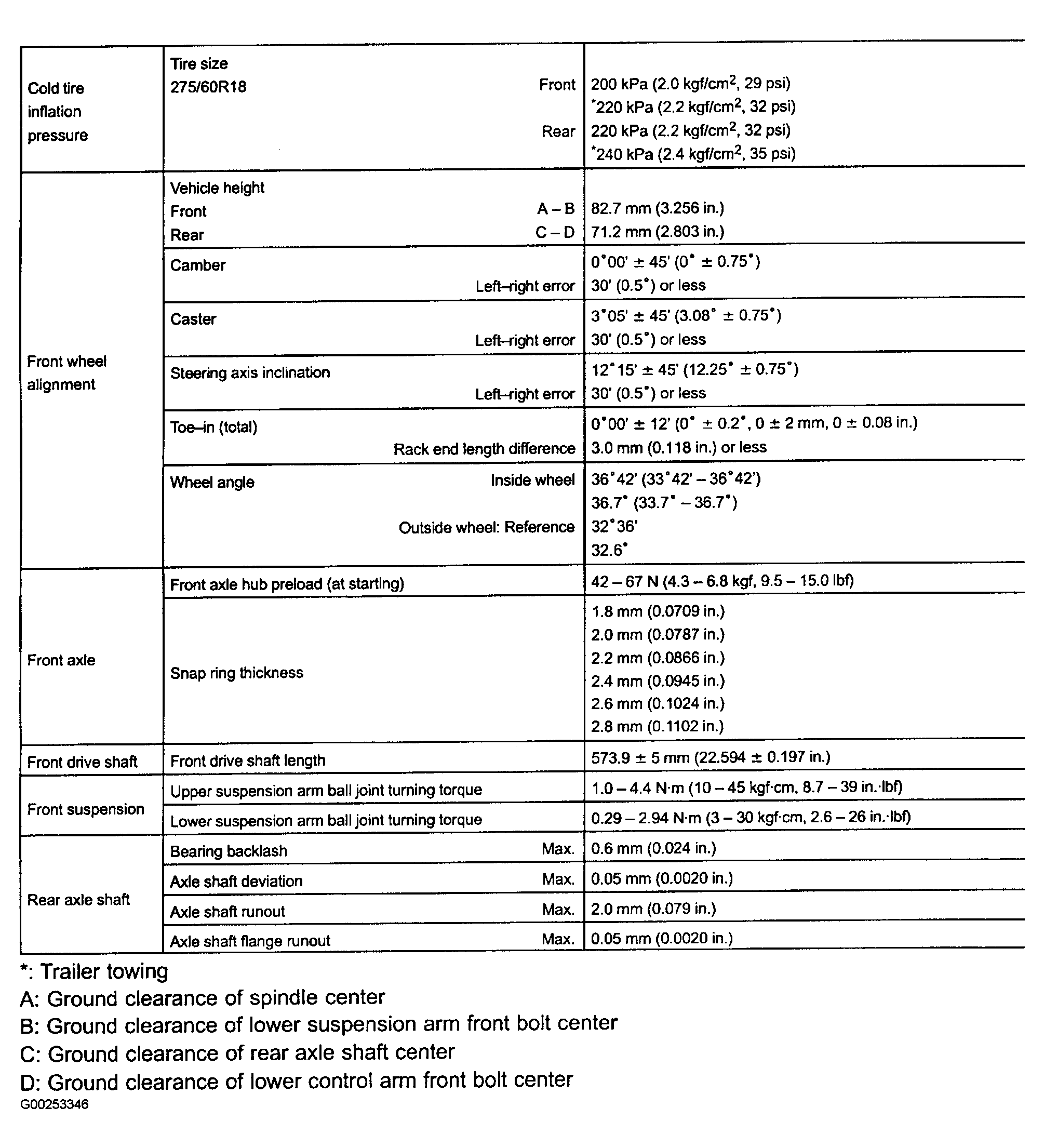 Fig 1: Front & Rear Wheel Alignment Specifications (LX 470)