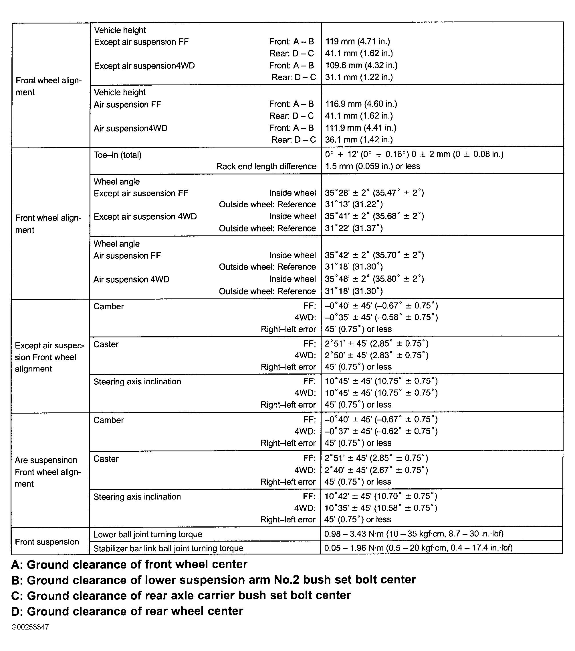 Fig 1: Front Wheel Alignment Specifications (RX 330)