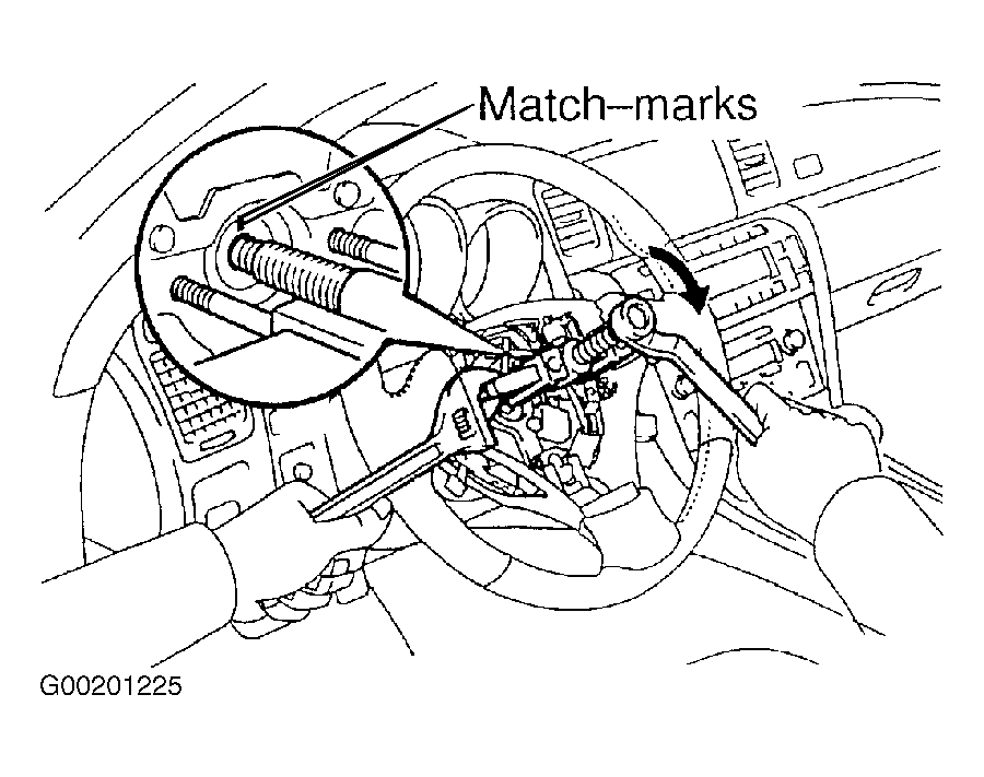 - Place match marks on the steering wheel and main shaft assembly. Using Special Tools (09950-50012, 09951-05010, 09952-05010, 09953-05020 and 09954-05020), remove the steering wheel. See Fig 3.