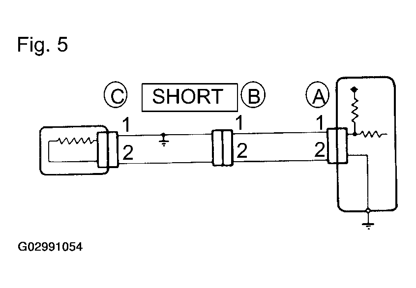 Therefore, it is found out that there is a short circuit between terminal 1 of connector "A" and terminal 1 of connector "C".