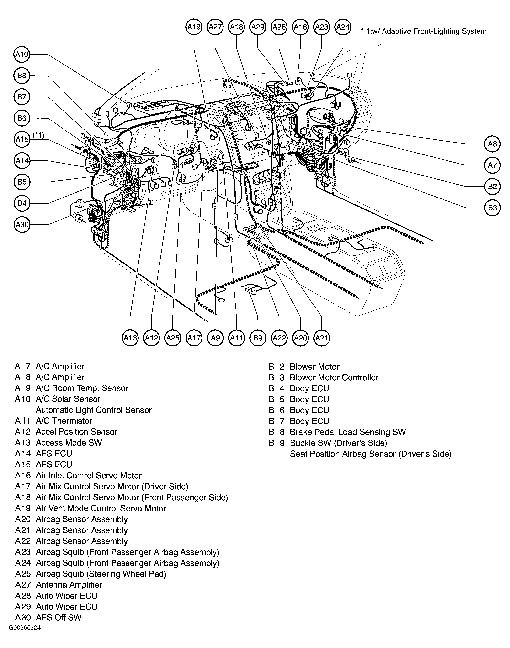 | Headlight Beam Level Control ECU | Behind left end of dash. See Figure. |