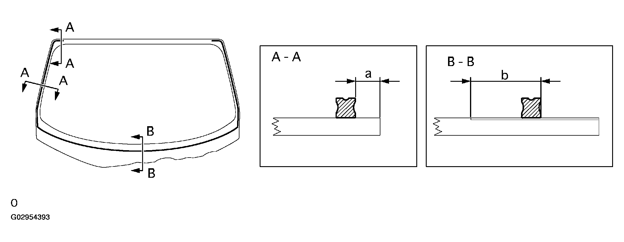 WINDOW GLASS ADHESIVE DAMArea Measurement a 7.0 mm (0.276 in.) b 48.5 mm (1.909 in.)