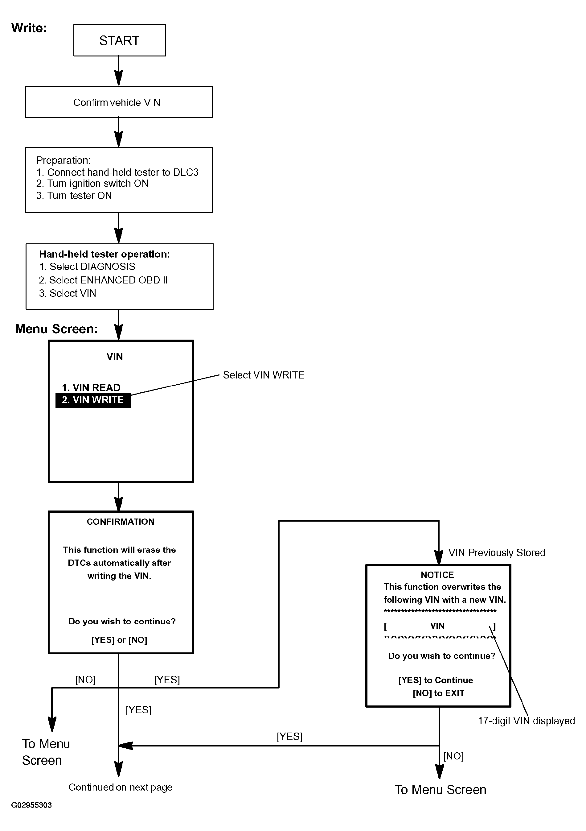 - Write VIN: Explains the VIN writing process in Fig 2. This process allows the VIN to be input into the ECM. If the ECM is changed, or the VIN and VIN do not match, the VIN can be registered, or overwritten in the ECM by following this procedure.
