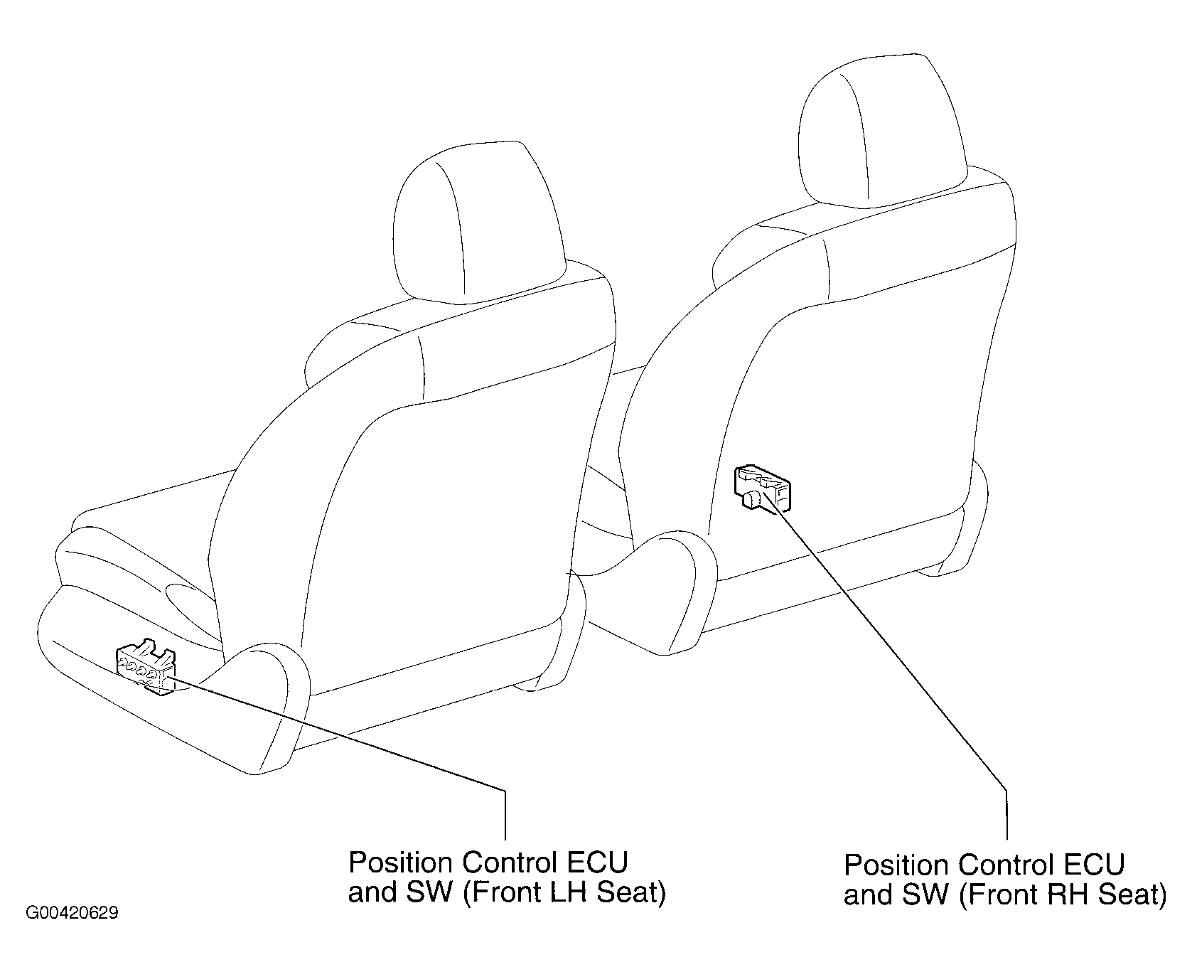 | Position Control ECU & SW (Left) | Below left front seat. See Figure. |