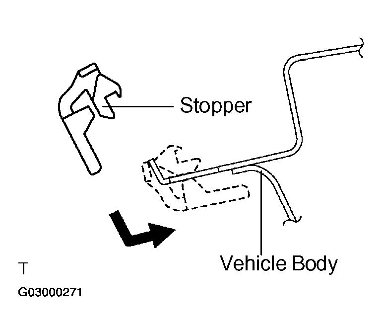 - Install 2 new stoppers to the vehicle body, as shown in Fig 7 .