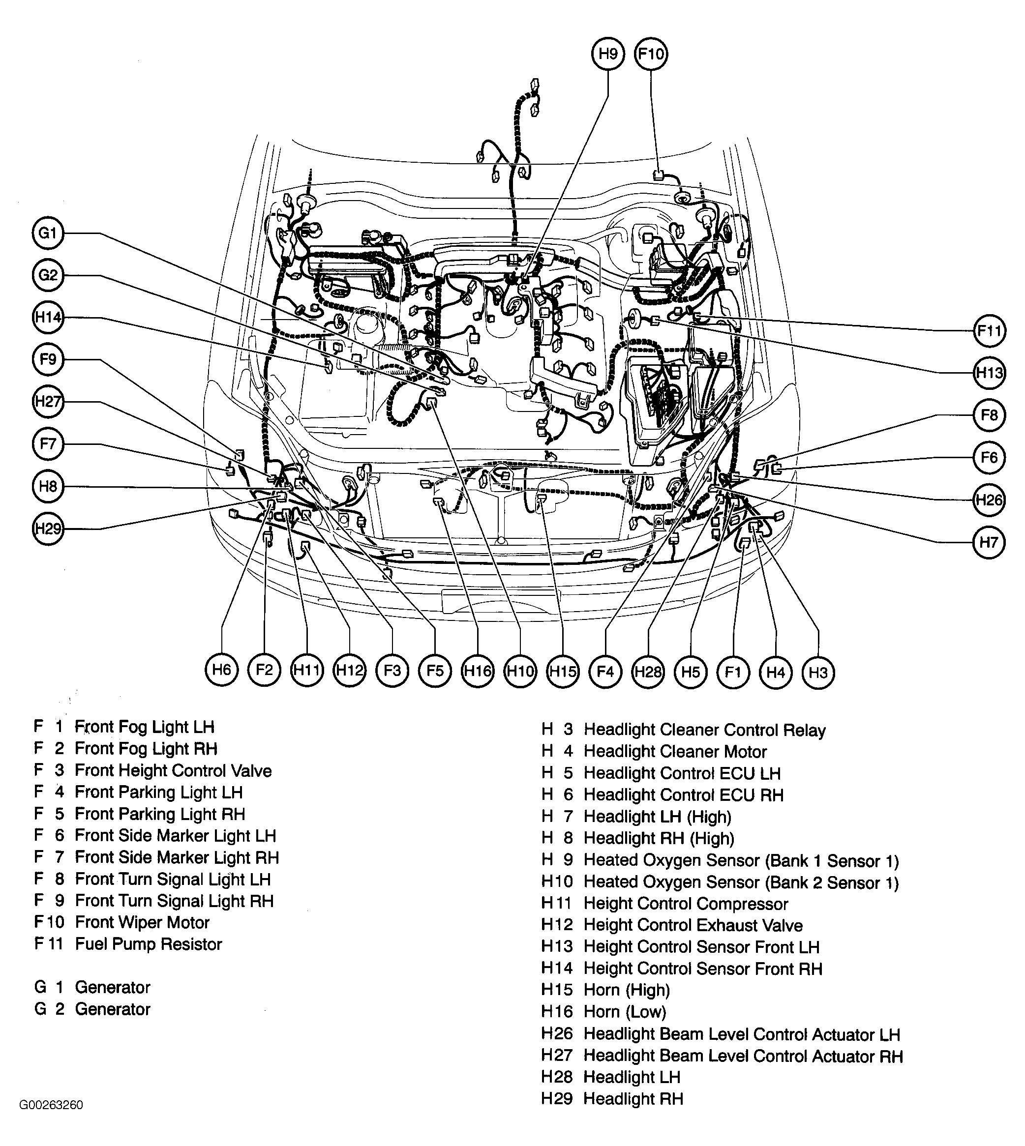 | Engine Room No. 1 R/B | On left front of engine compartment, behind headlight. See Figure. |
