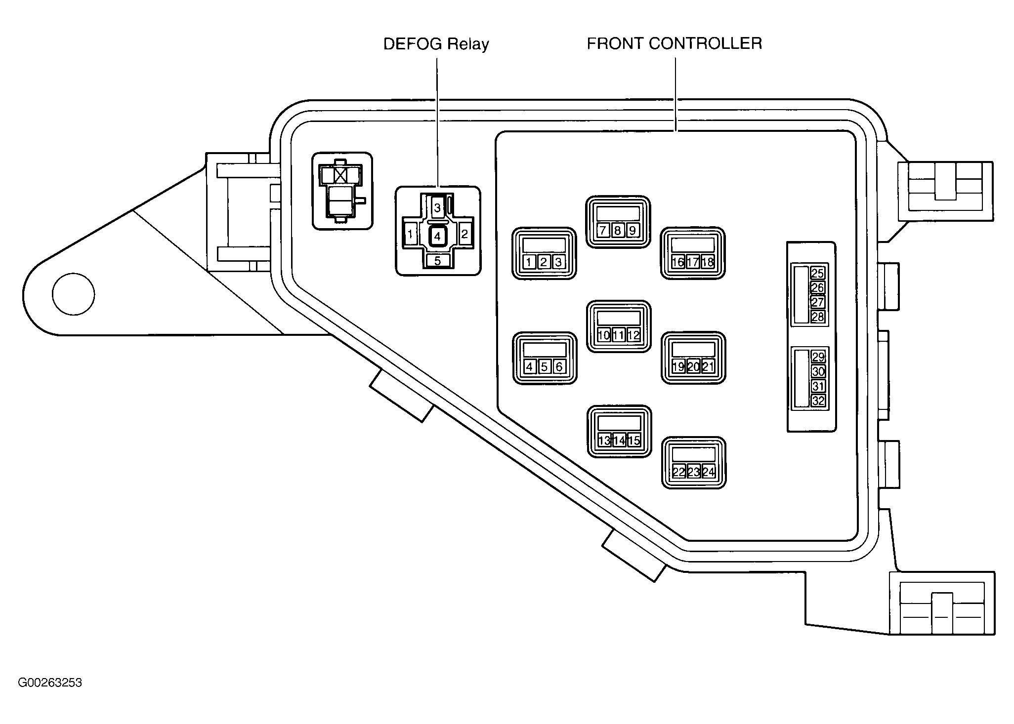 | Passenger Side J/B ECU | At right kick panel. See Figure. |